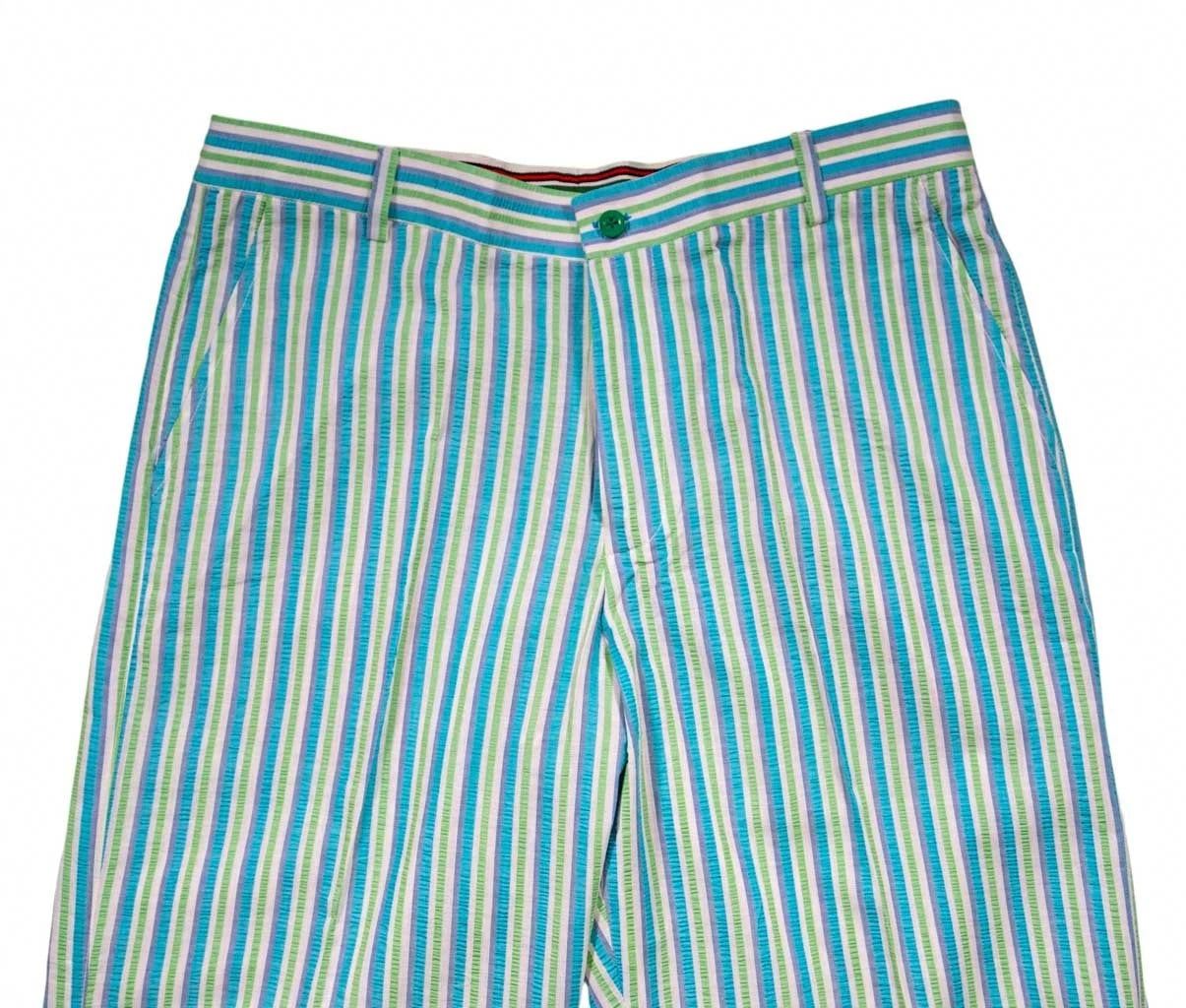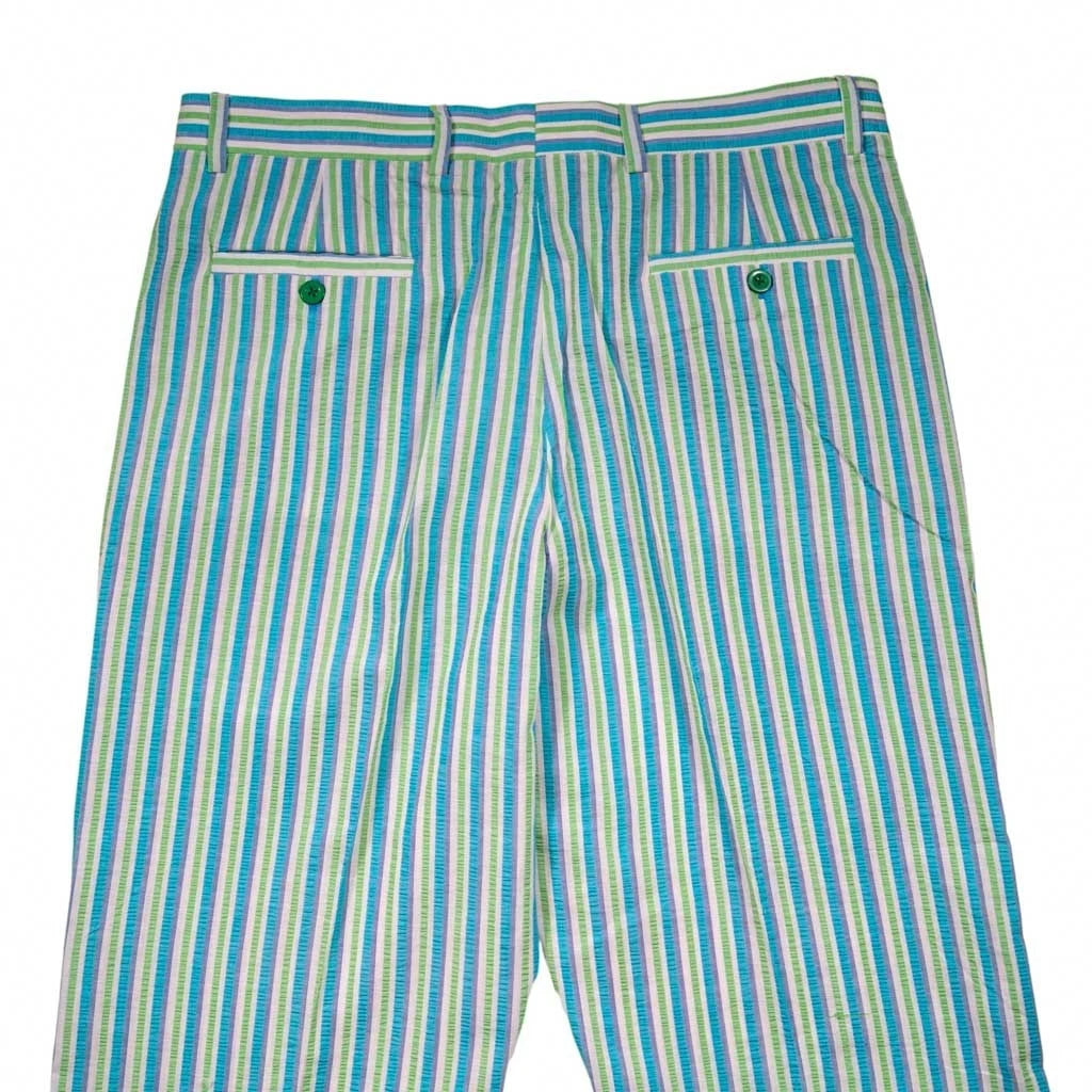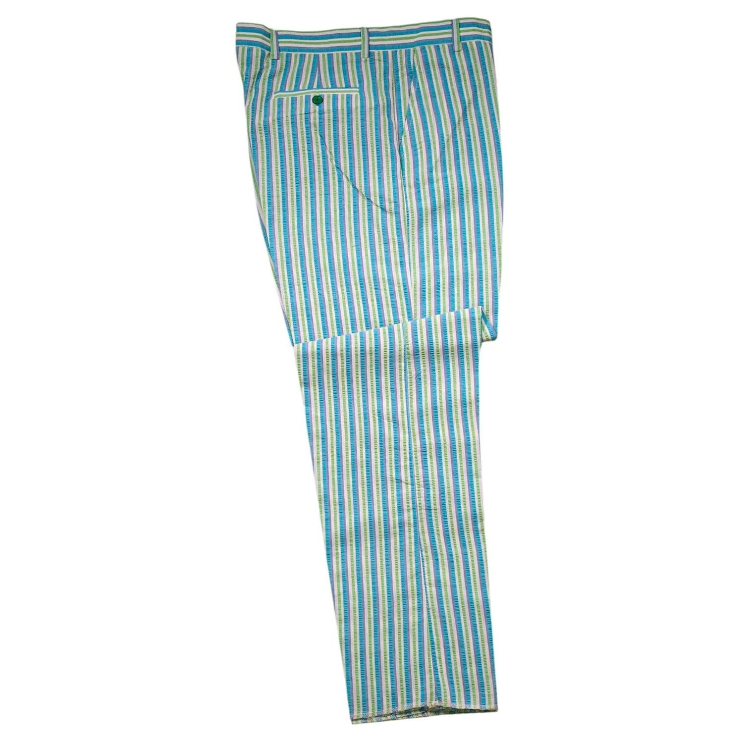 Mens 34 Chino Pants Blue Green Seersucker Stripe Flat Front Straight Trousers