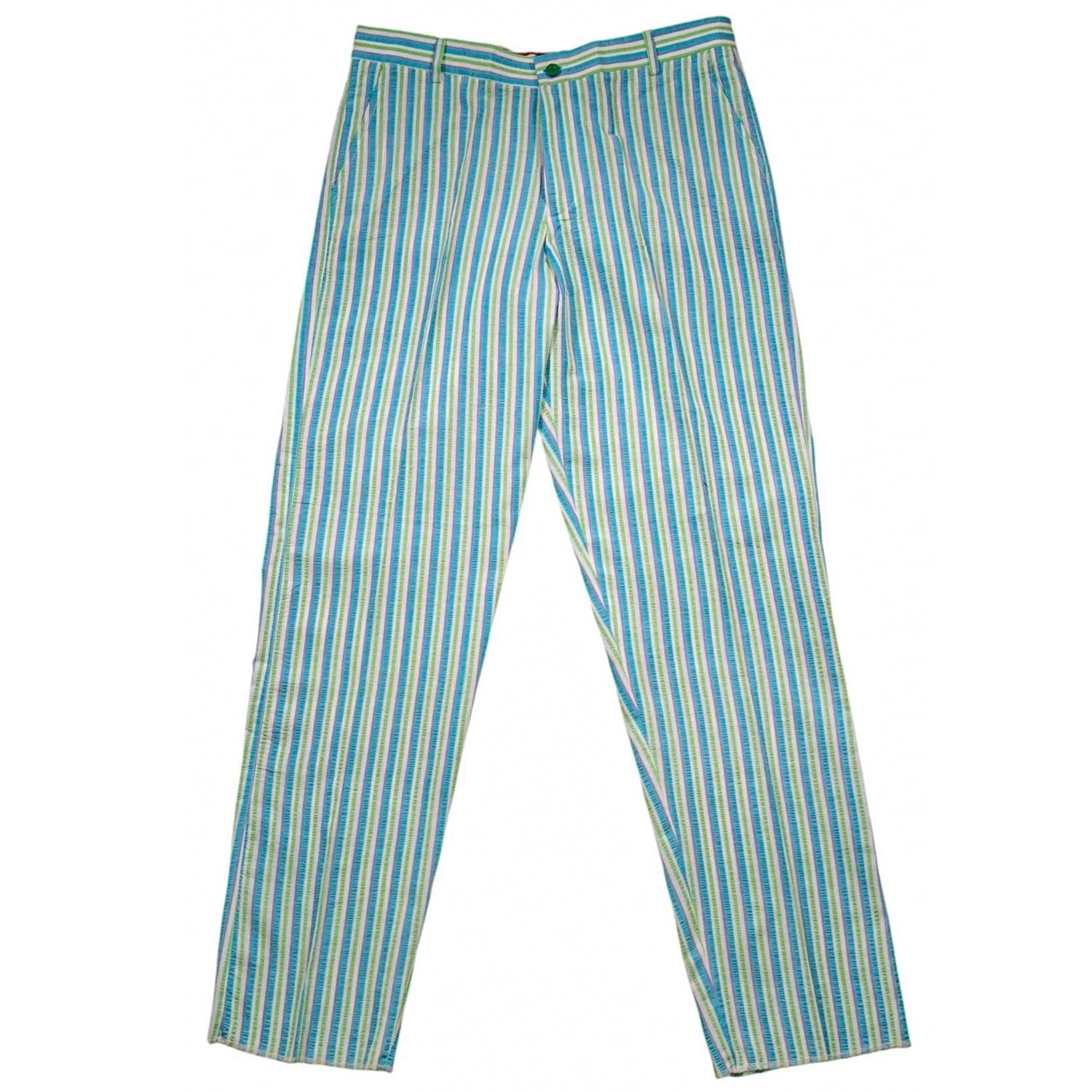 Elevate your wardrobe with these statement pants from Chiragh — where modern tailoring meets bold design. Cut from 100% cotton seersucker in striking blue, green, purple, and white stripes, these trousers balance luxury craftsmanship with a playful yet refined aesthetic. Each pair is 100% handmade, designed for men who value individuality, comfort, and style.