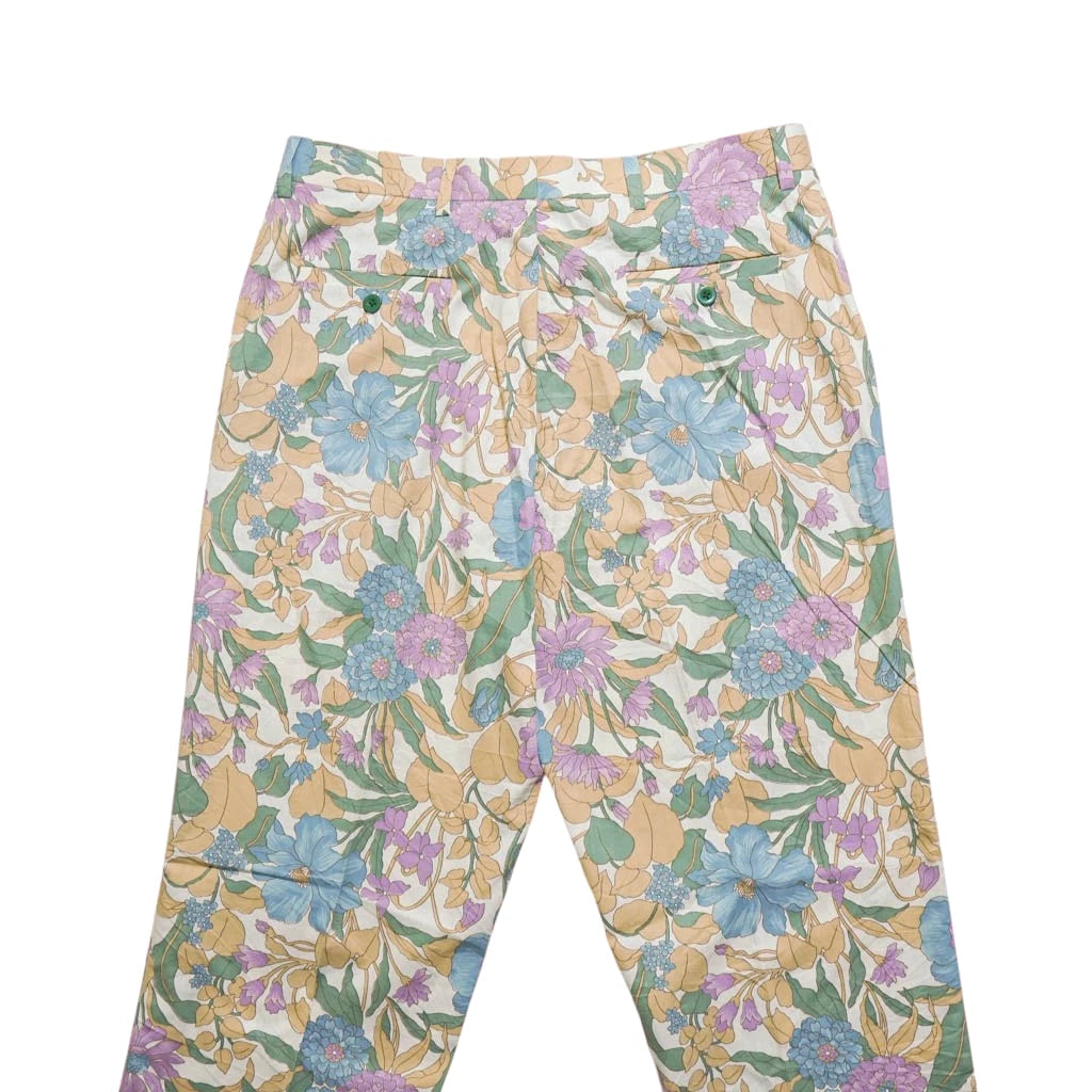 Mens 34 Floral Pants Cream Multicolor Cotton Flat Front Straight Fit Trousers
