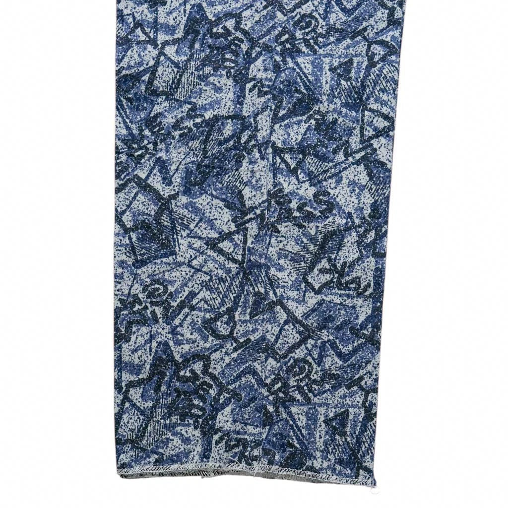 Functional Details: Button-and-zip fly, reinforced seams, and carefully aligned abstract pattern for a clean, cohesive finish.
