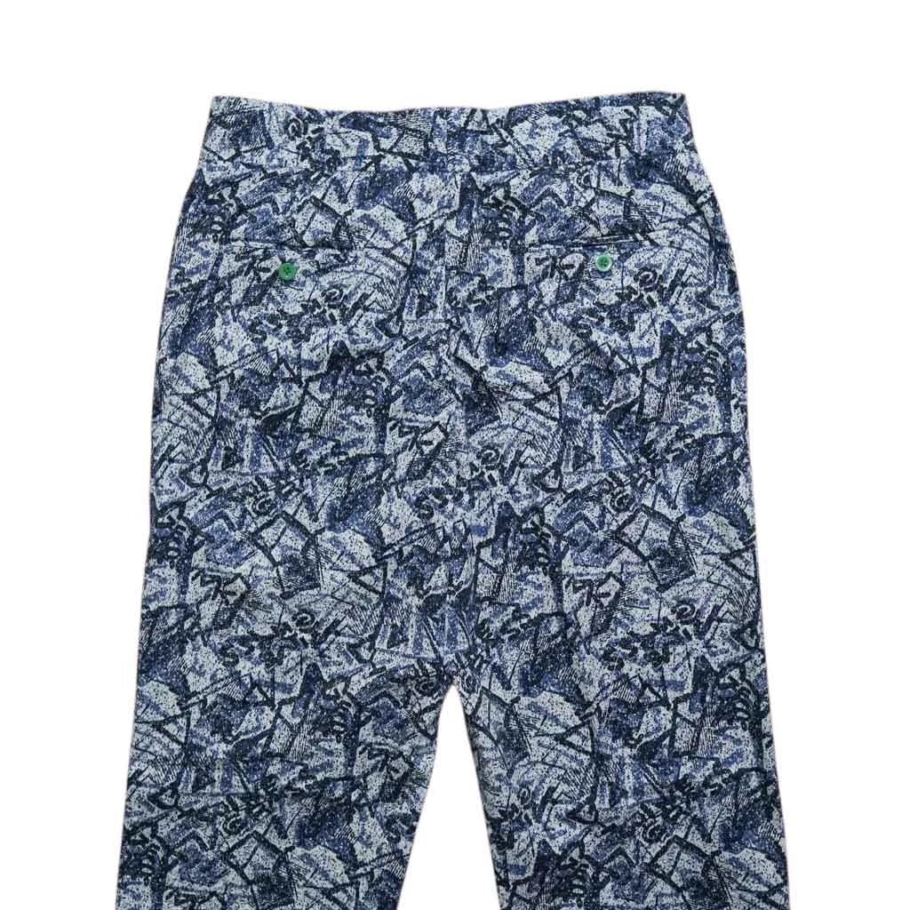 Mens 34 Gurkha Pants Blue Gray Abstract Cotton Trousers Flat Front Straight Fit