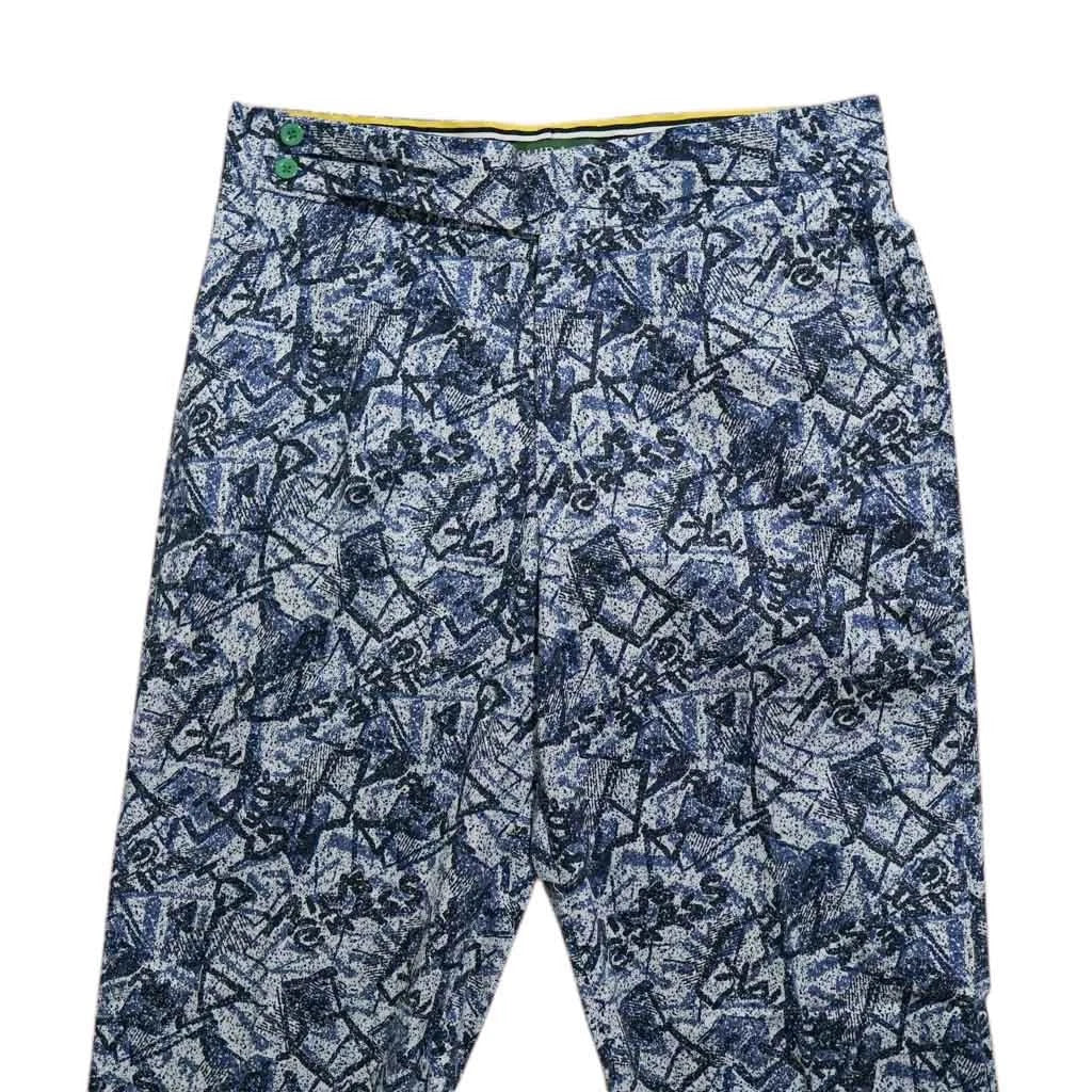 Men’s Blue & Gray Abstract Cotton Gurkha Pants – Handmade Luxury Tailoring