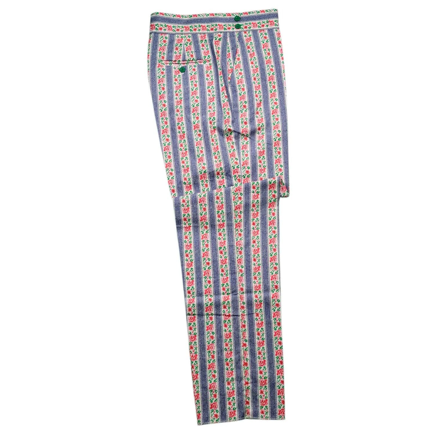 Mens 34 Gurkha Pants Blue Pink Floral Striped Cotton Flat Front Straight Fit Trousers