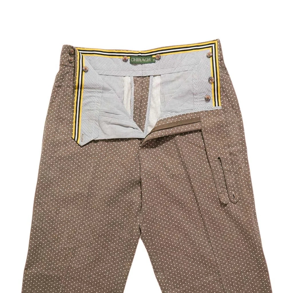 Men’s Brown & White Polka Dot Cotton Gurkha Pants – Handmade Luxury Tailoring