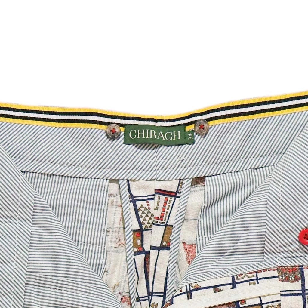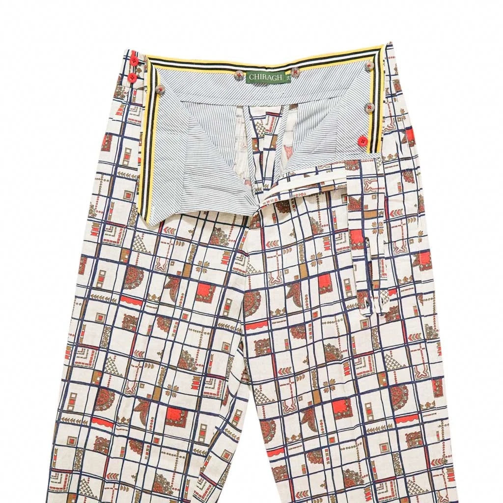 These Mens Ivory Geometric Gurkha Pants combine contemporary patterning with classic tailoring — expertly handmade for those who appreciate refined craftsmanship with a unique visual identity. Crafted from 100% cotton, they offer a lightweight, breathable feel ideal for year-round styling, especially in warm weather.
