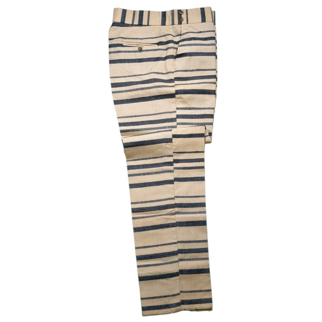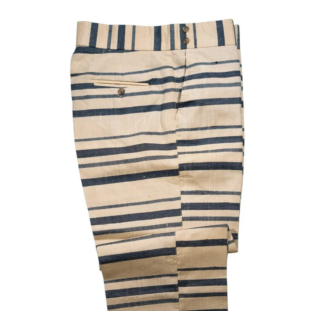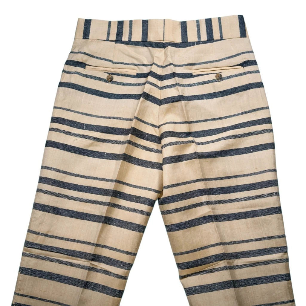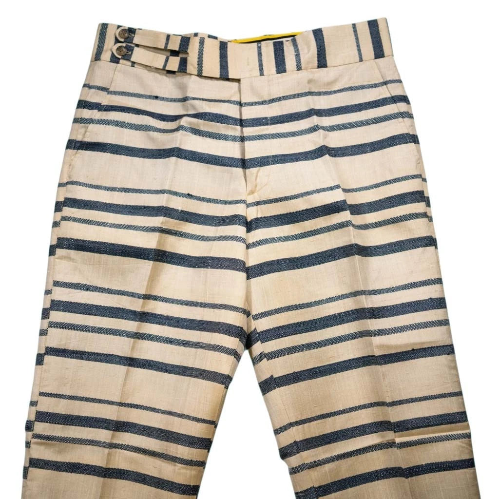 Mens 34 Gurkha Pants Cream Navy Striped Viscose Flat Front Straight Fit Trousers