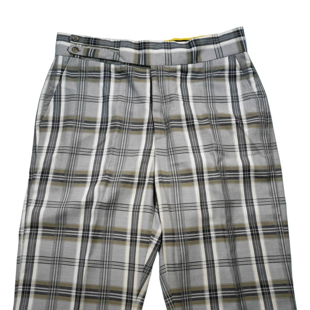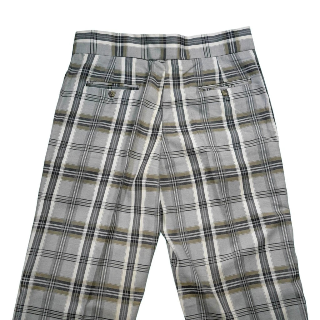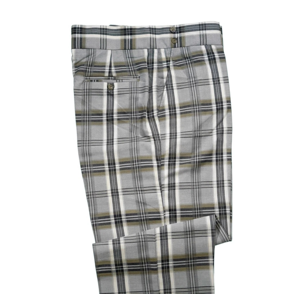 Mens 34 Gurkha Pants Gray Black Olive Plaid Cotton Flat Front Straight Trousers