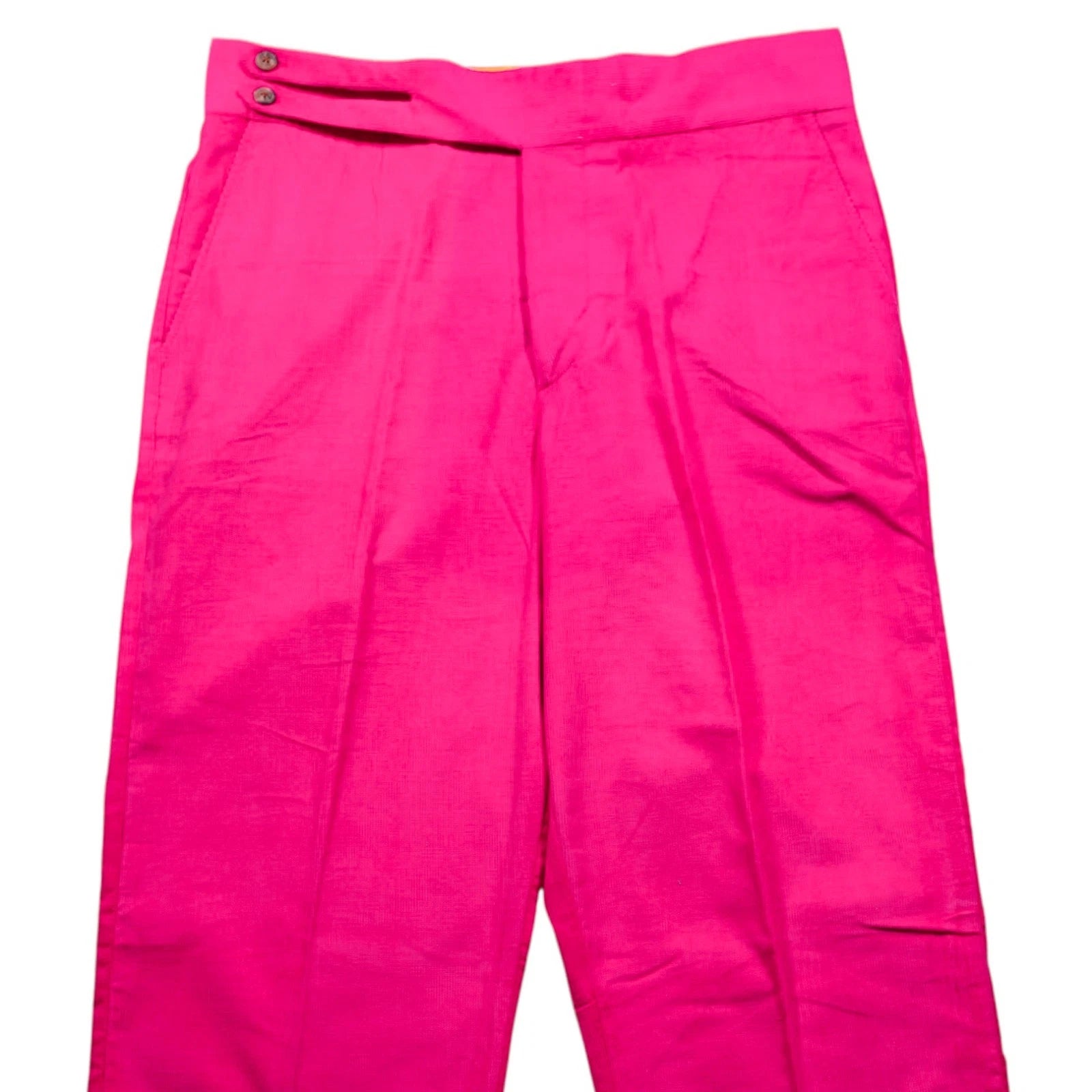 Mens 34 Gurkha Pants Magenta Pink Corduroy High Waist Flat Front Straight Fit Handmade