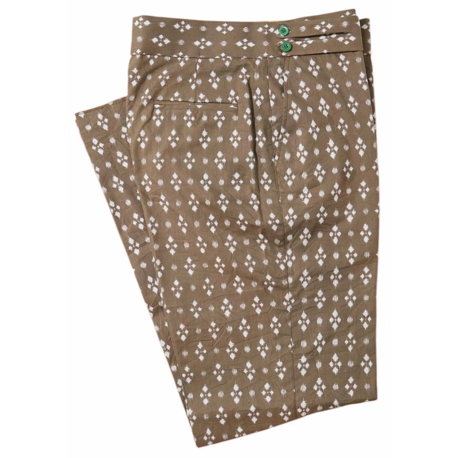 Men’s Tan & White Geometric Print Cotton Gurkha Pants – Handmade Luxury Tailoring