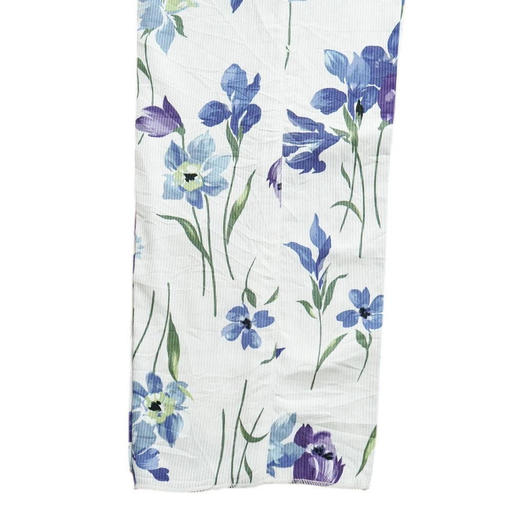 Set against a pure white base, the hand-painted style blue and purple floral motif adds movement, color, and artistic dimension. The iconic double extended tab Gurkha waistband sculpts the waist with precision and built-in adjustability, ensuring a secure and flattering fit.