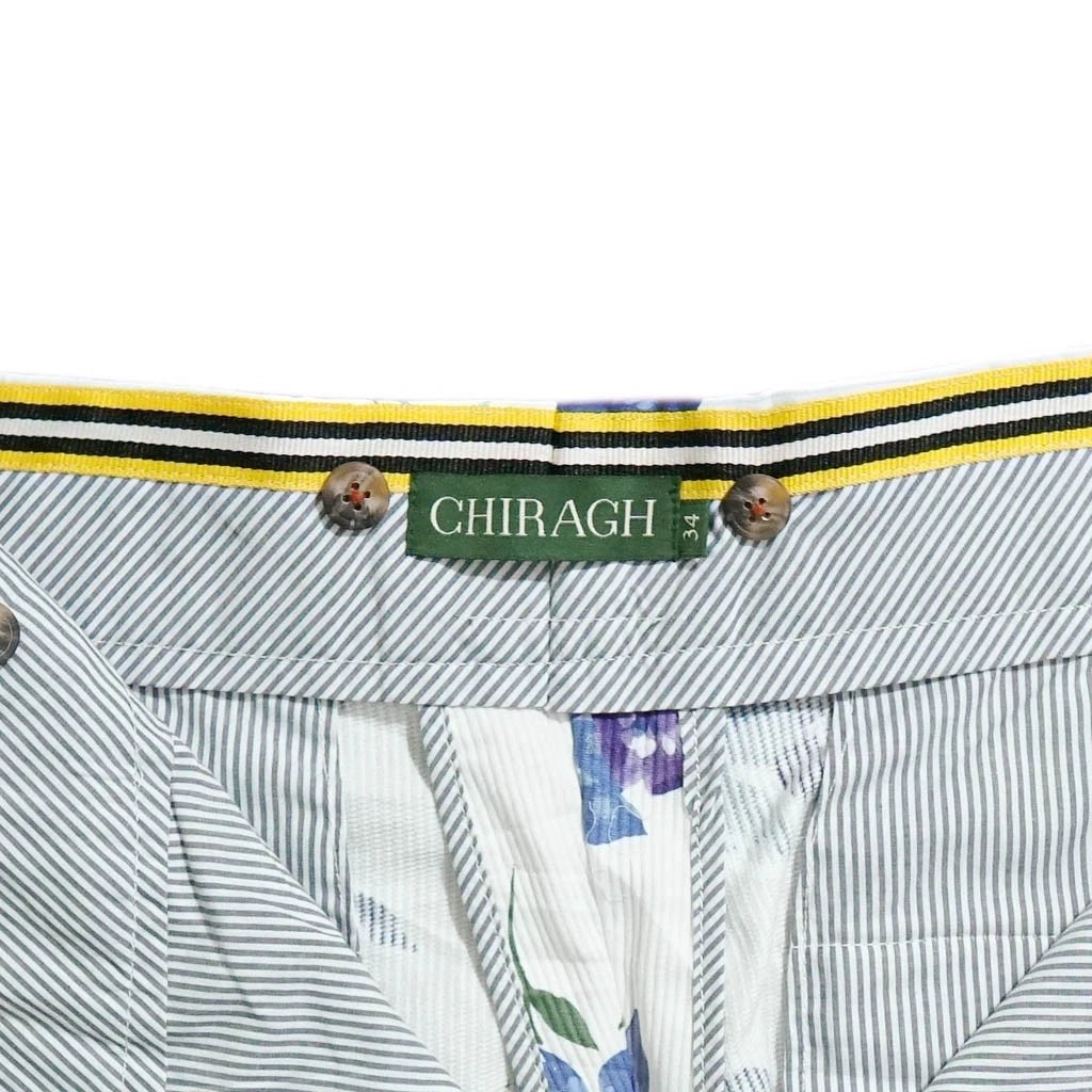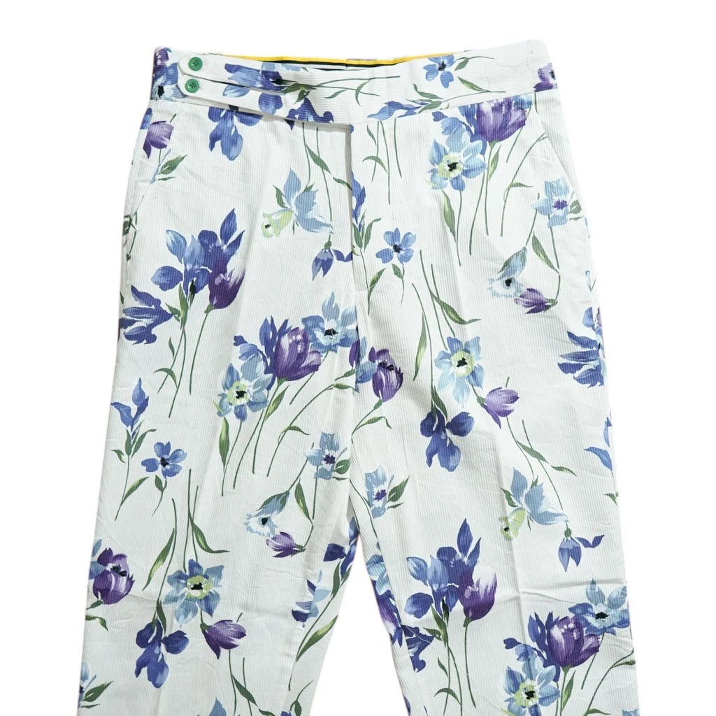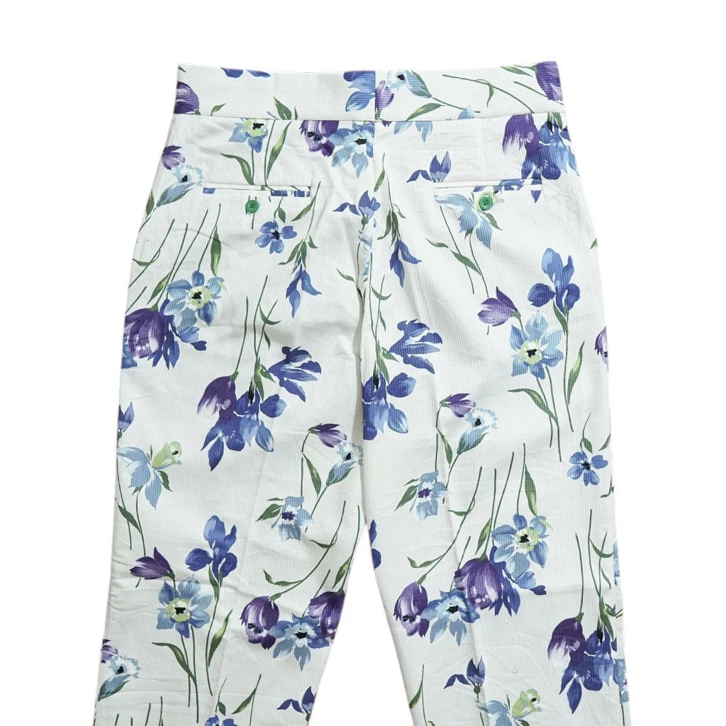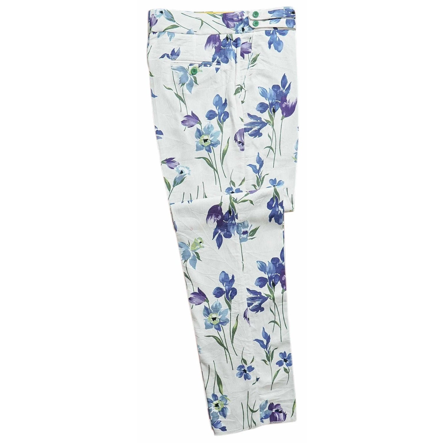 Mens 34 Gurkha Pants White Blue Purple Floral 100% Cotton Flat Front Straight Fit Handmade