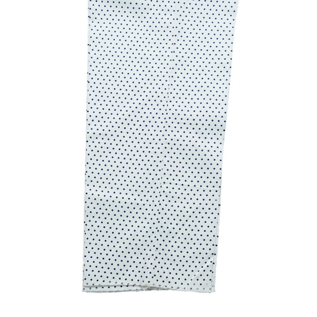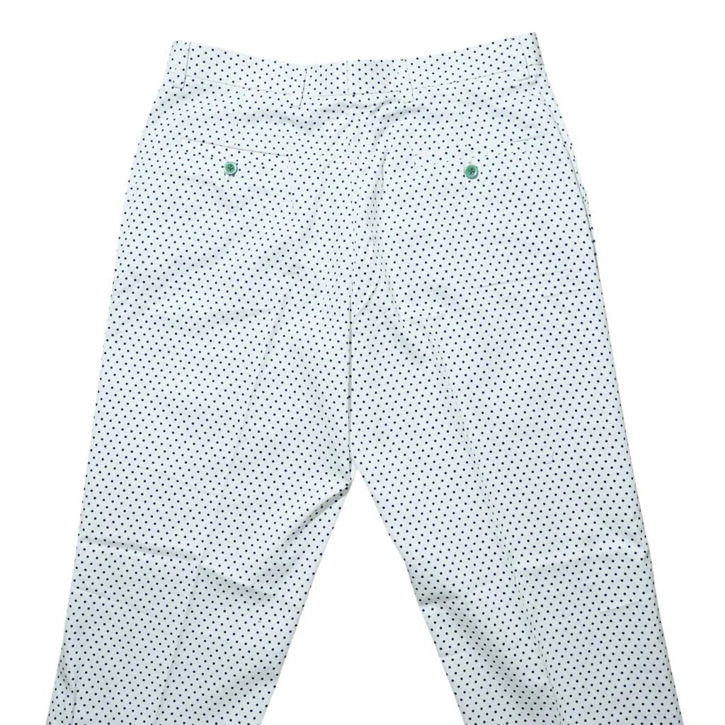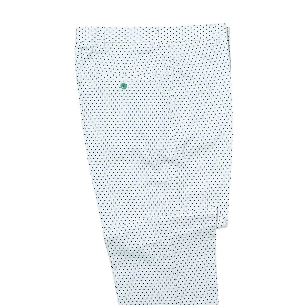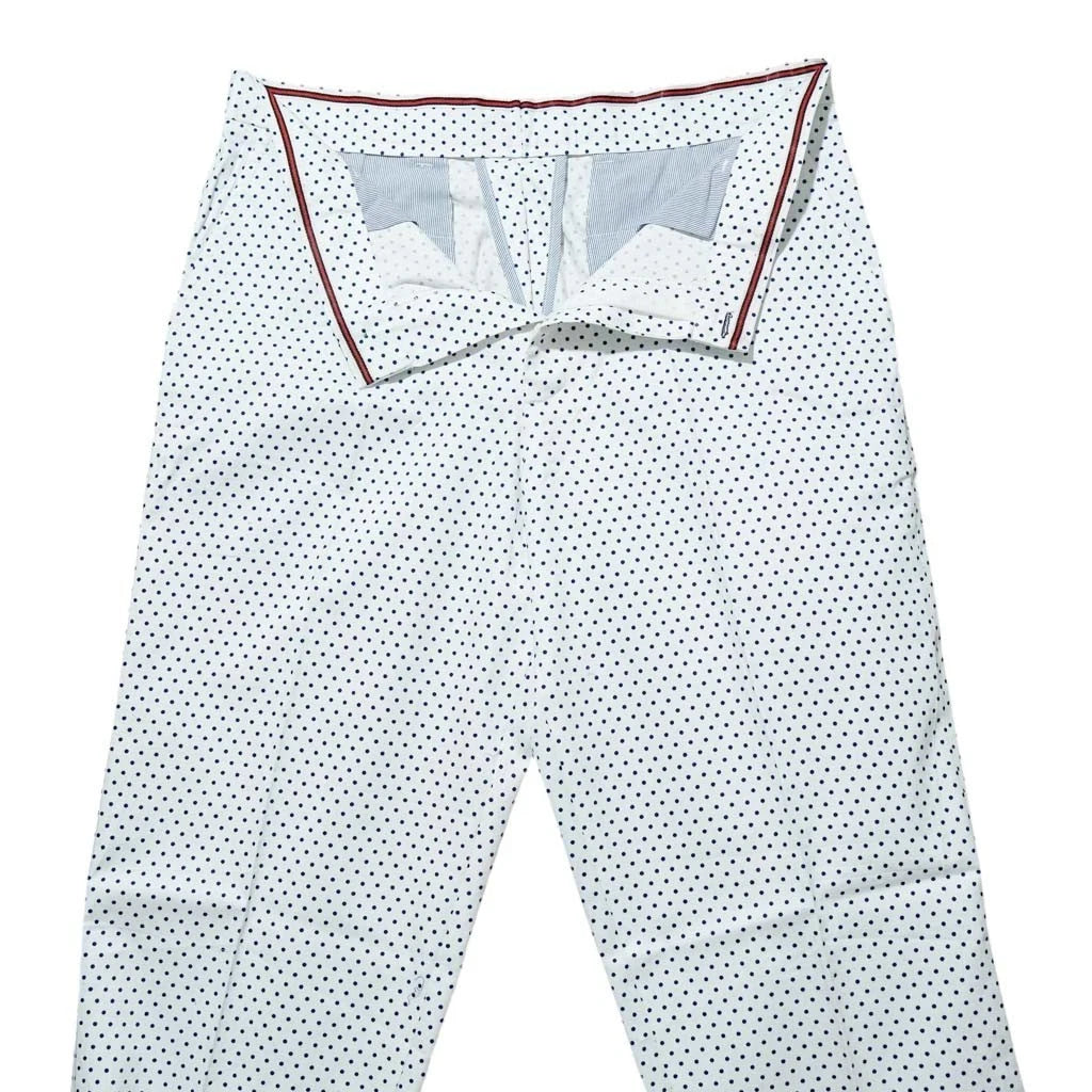 Mens 34 Polka Dot Pants White Navy Blue Cotton Flat Front Straight Fit Trousers