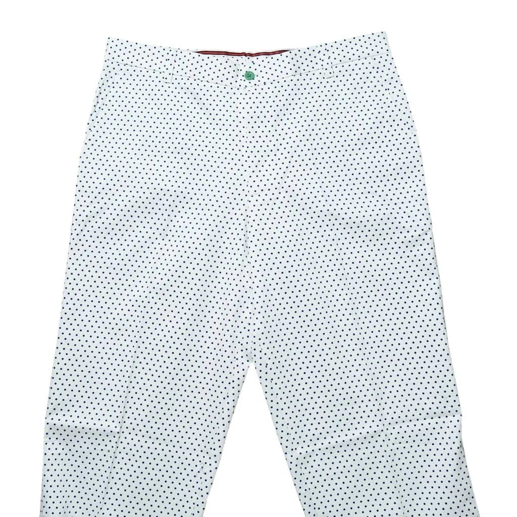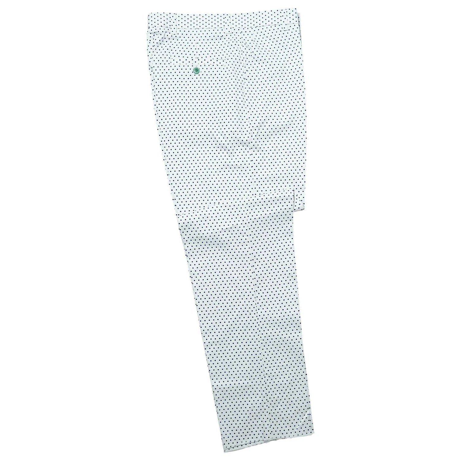 Mens 34 Polka Dot Pants White Navy Cotton Printed Flat Front Straight Fit Trousers