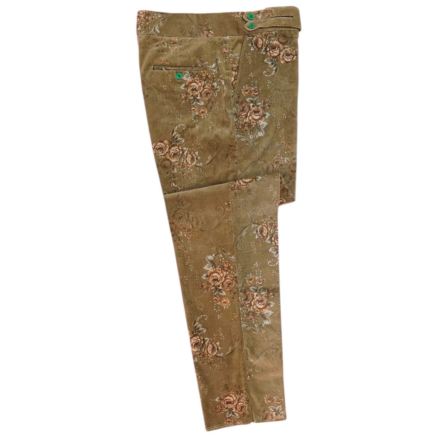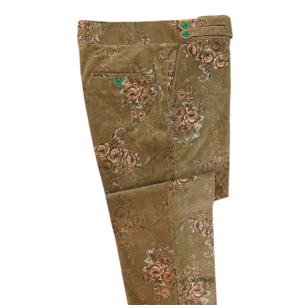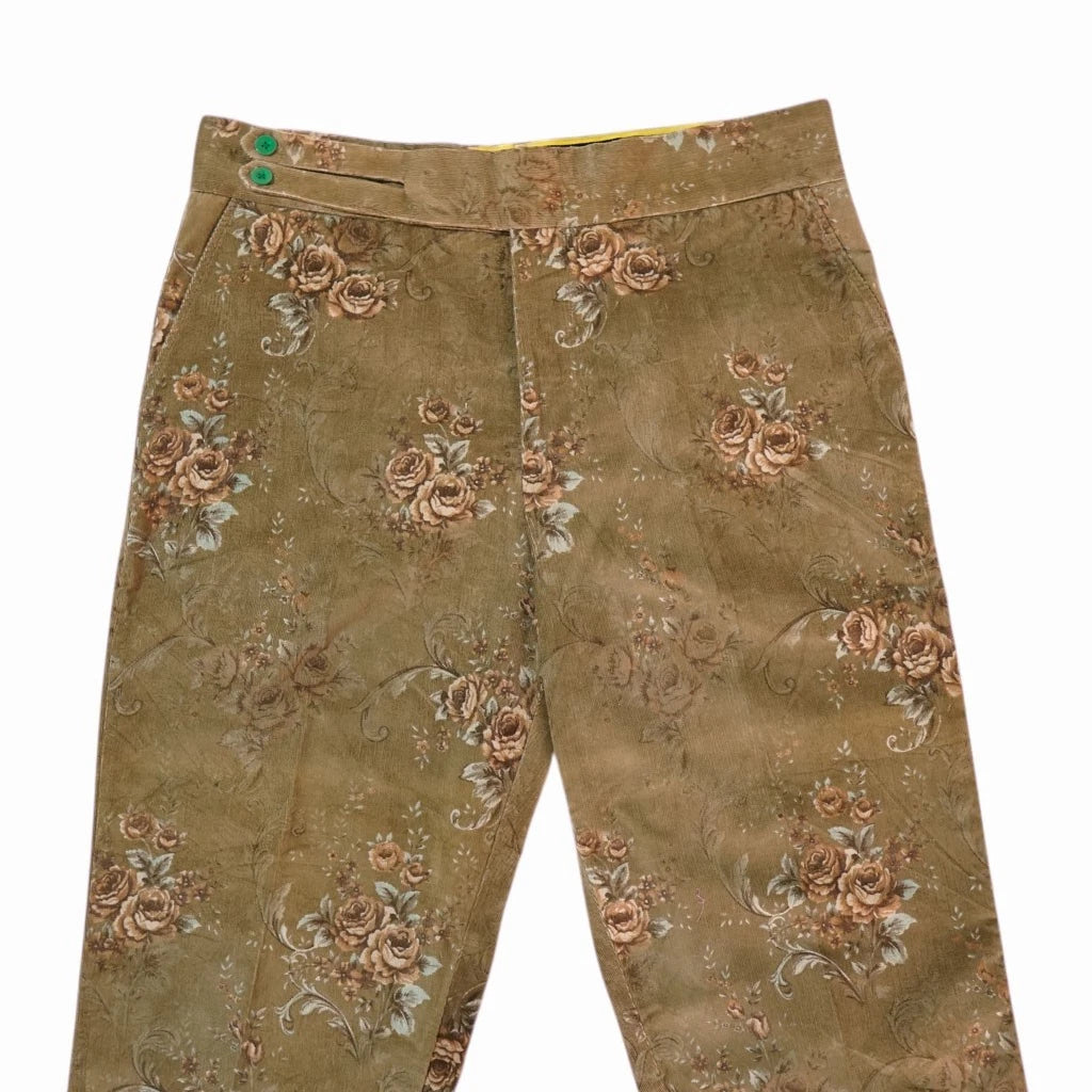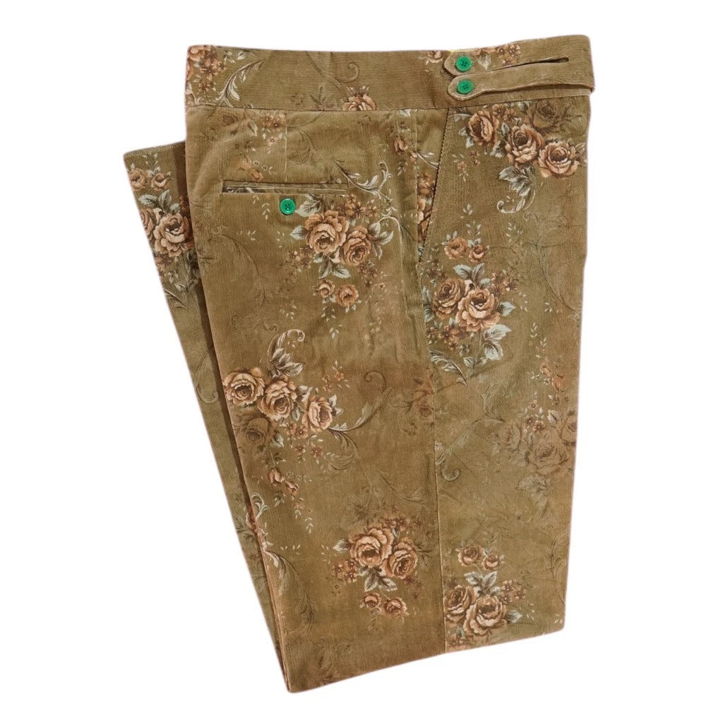 Mens 36 Gurkha Pants Brown Floral Corduroy Flat Front Straight Handmade Trousers