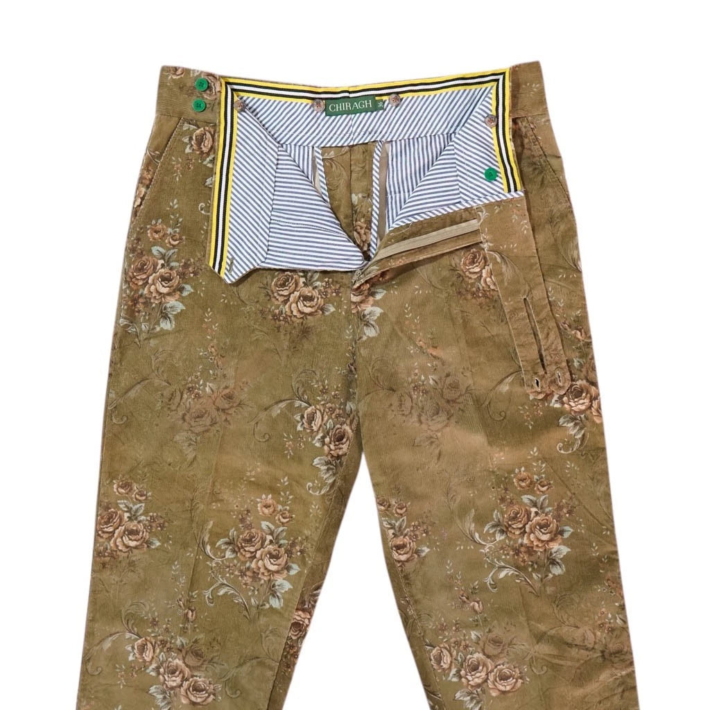 These Chiragh Men’s Brown Floral Corduroy Gurkha Pants are a celebration of texture and refinement — merging old-world charm with contemporary tailoring. Crafted from luxurious mid-weight cotton corduroy, this premium edition offers a plush, structured drape that captures the richness of traditional British fabrics while maintaining relaxed comfort.