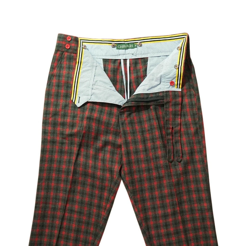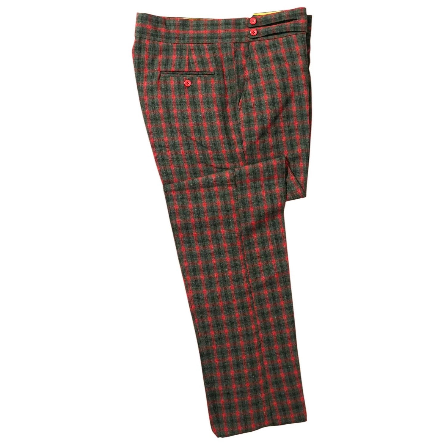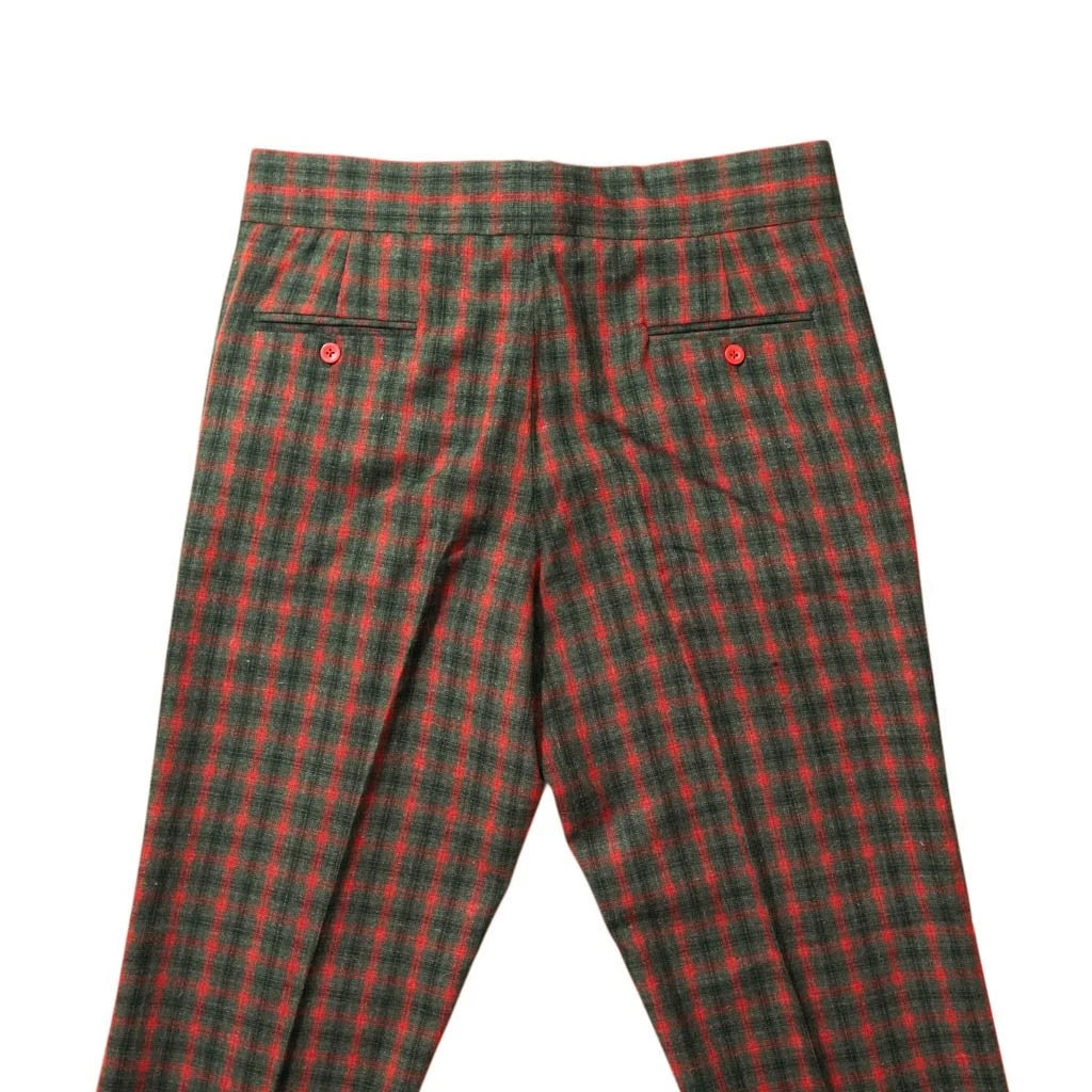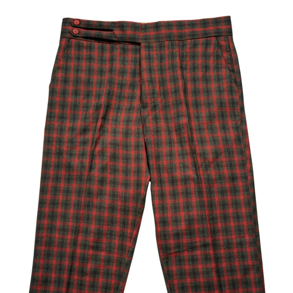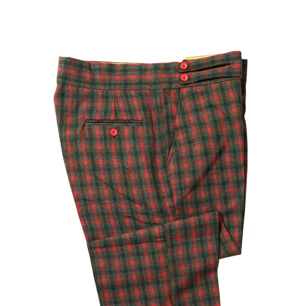 Mens 36 Gurkha Pants Green Red Plaid Check Wool Flat Front Straight Fit Trousers