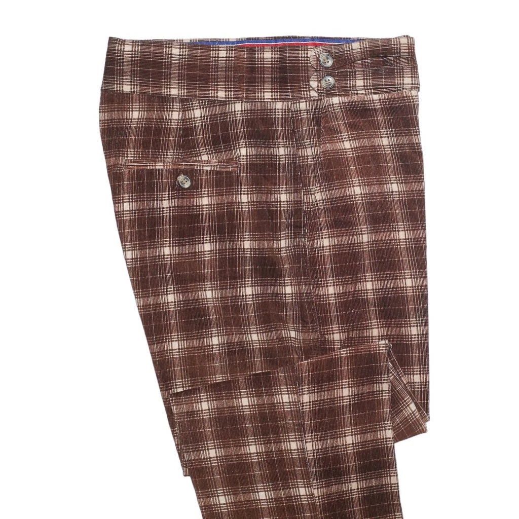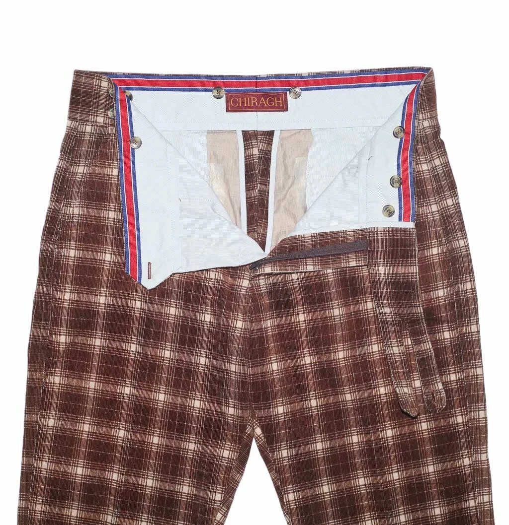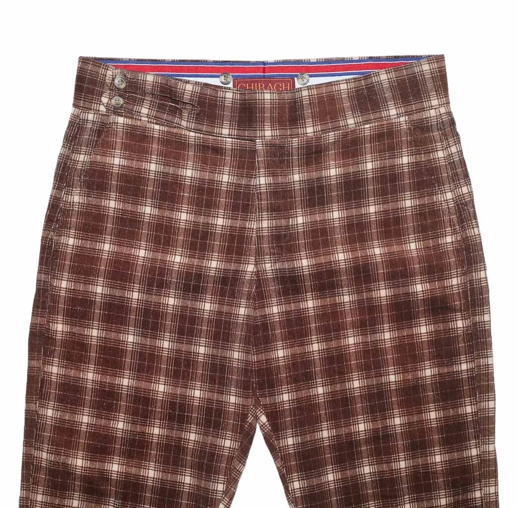 Step into refined style with these brown and beige plaid check Gurkha trousers by Chiragh. Handcrafted from 100% premium cotton corduroy, they feature a slim straight, flat-front fit designed for modern sophistication and all-day comfort.