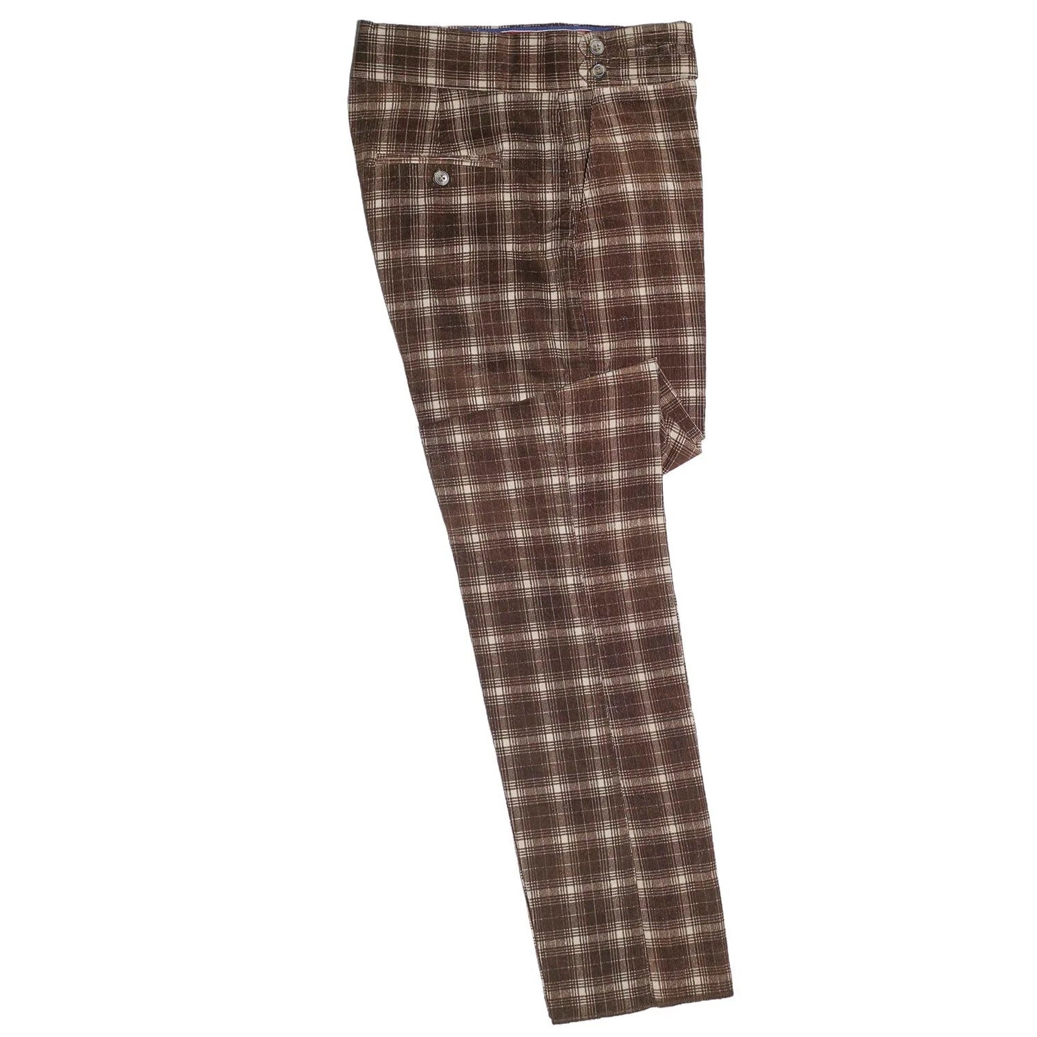 Mens Gurkha Corduroy Trousers 34 Brown Beige Plaid Slim Fit Flat Front Pants