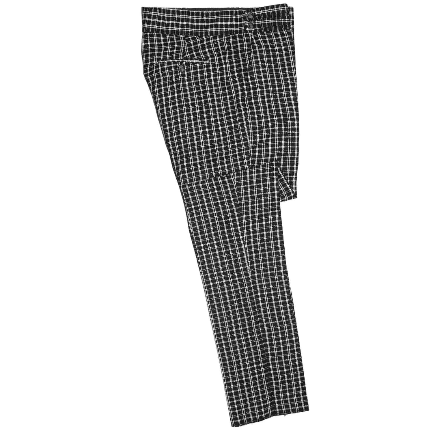 Mens Gurkha Dress Pants 34 Cotton Black White Plaid Slim Fit High Waist Trousers