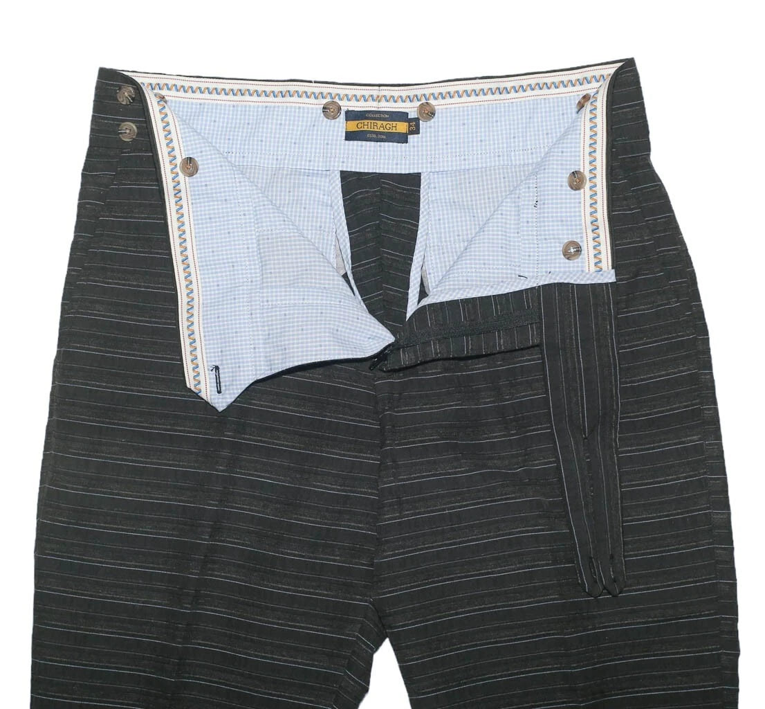 š„ Handmade Gurkha Wool Blend Trousers ā Gray & Blue Striped Elegance
