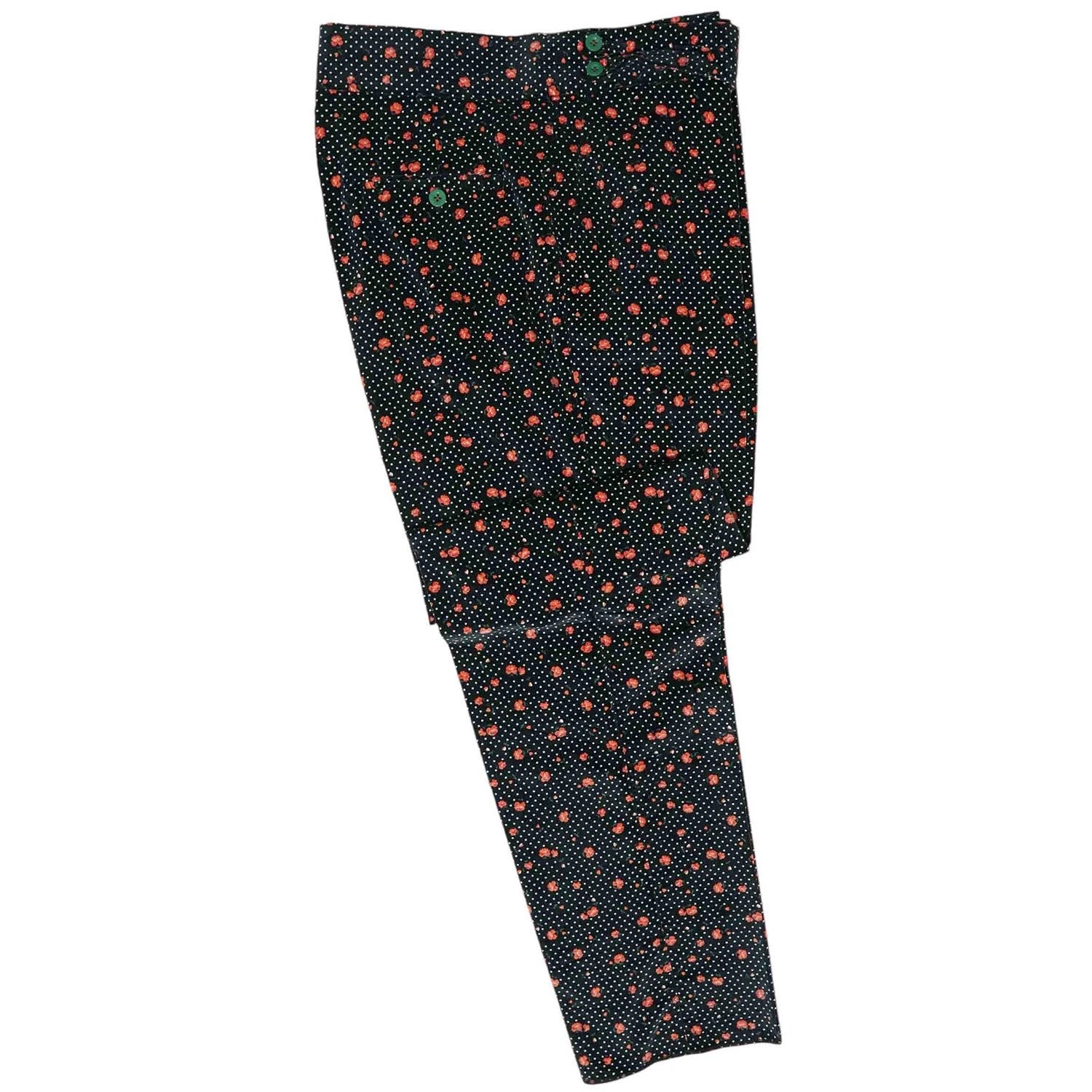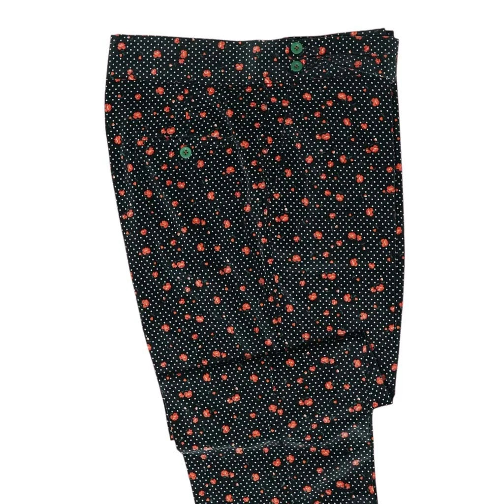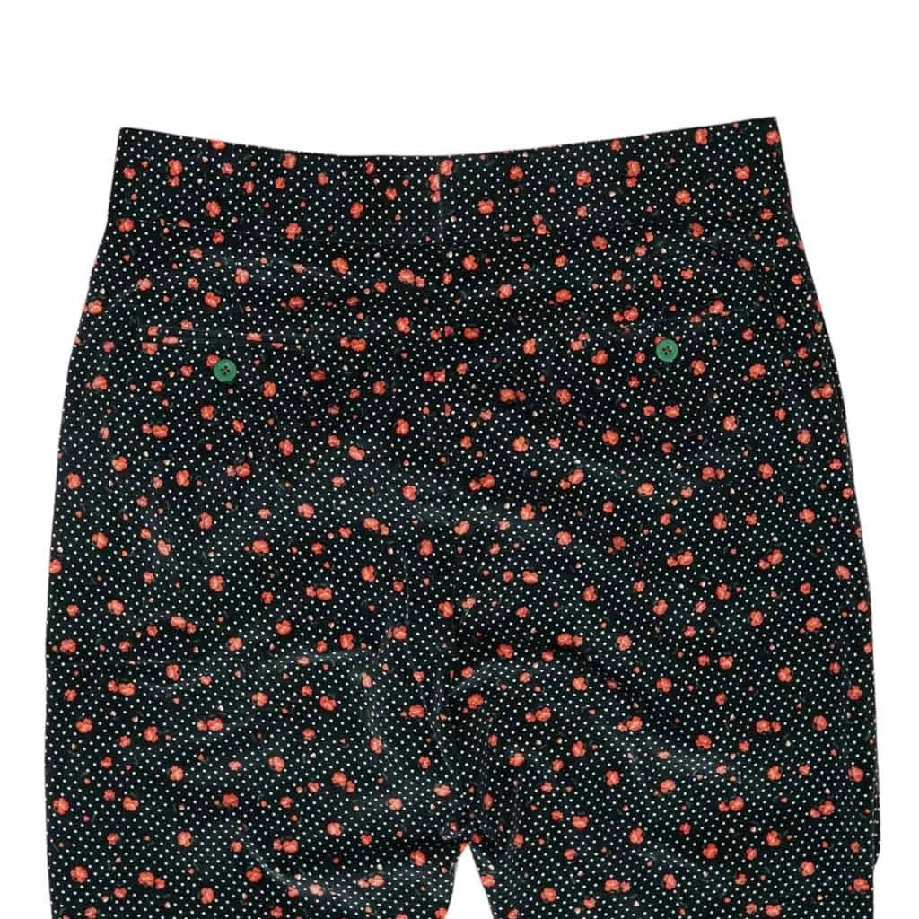 Mens Gurkha Pants 36 Black Orange Velvet Floral Polka Dot Trousers Straight Fit