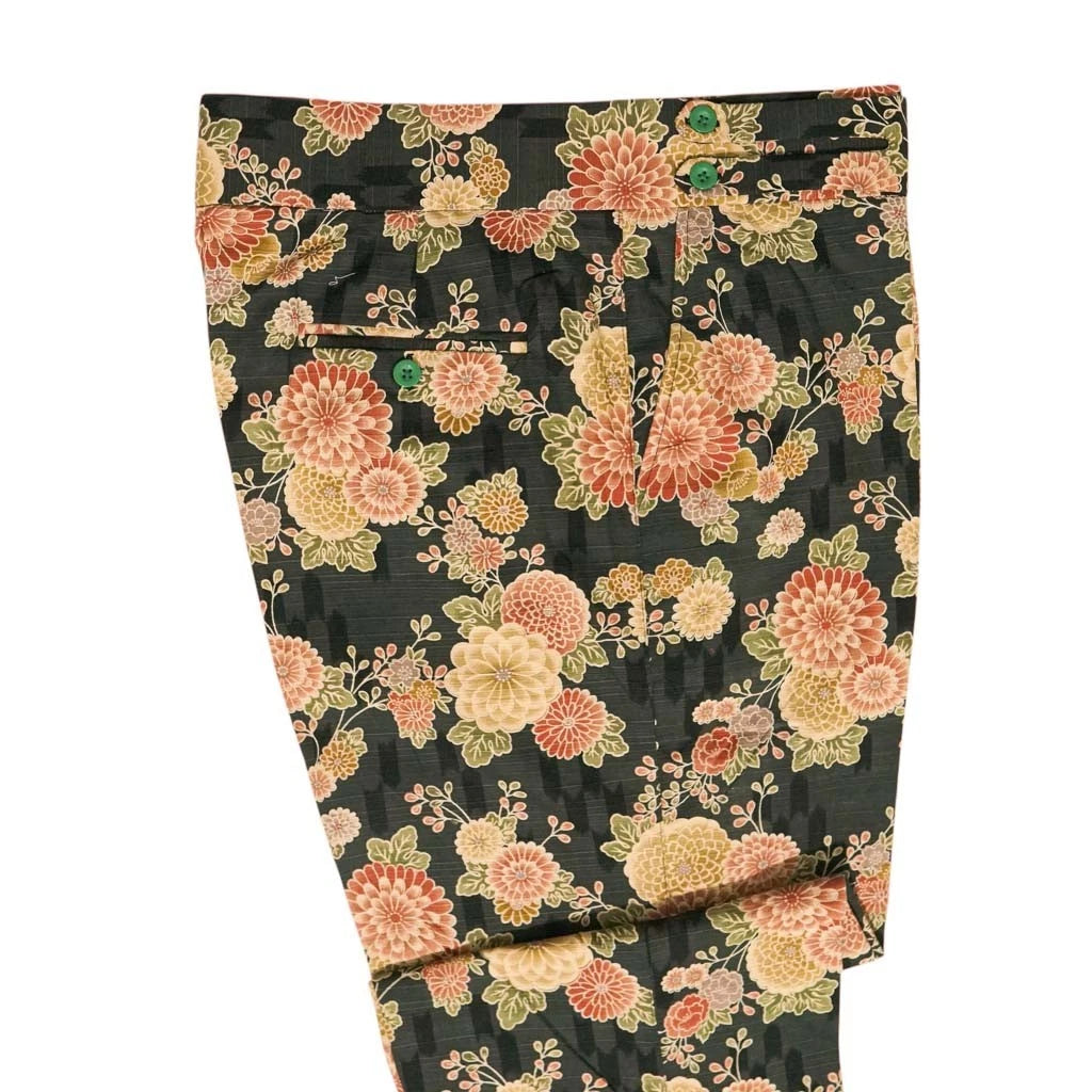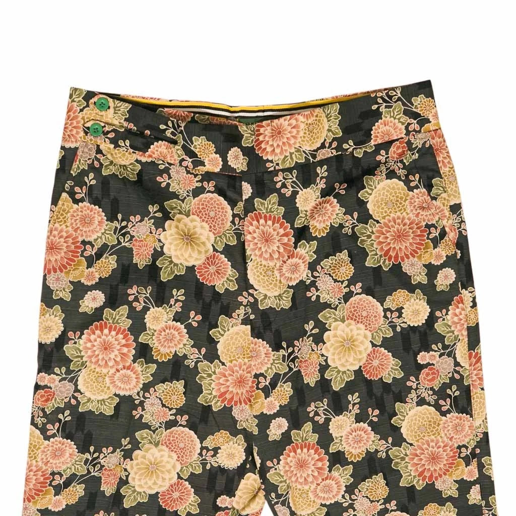 Mens Gurkha Pants 36 Multicolor Floral Cotton Trousers Straight Fit Flat Front