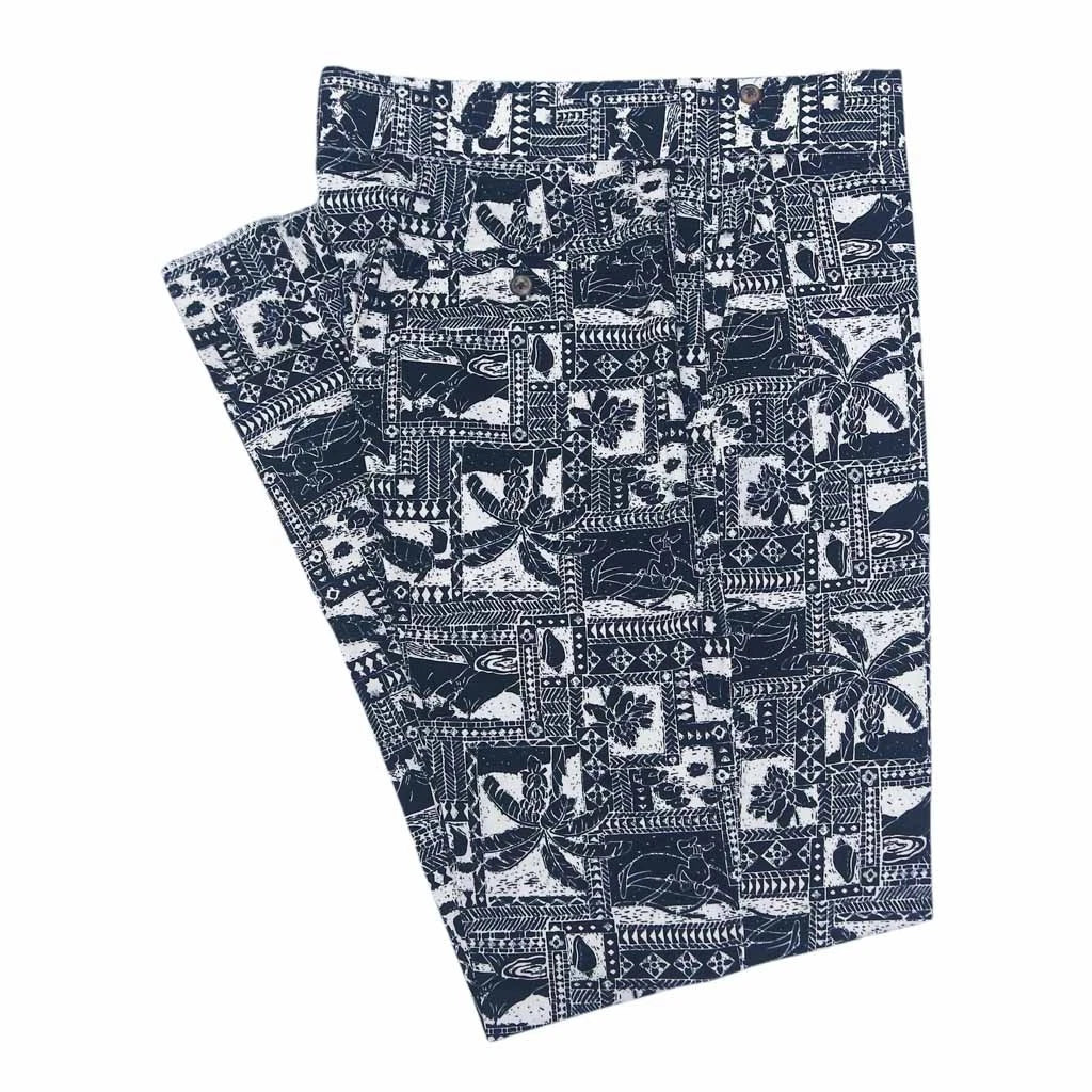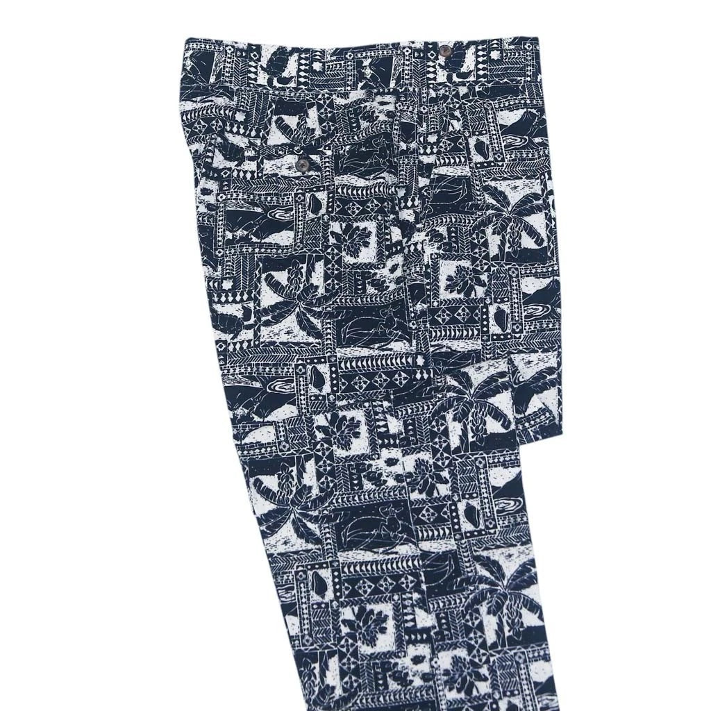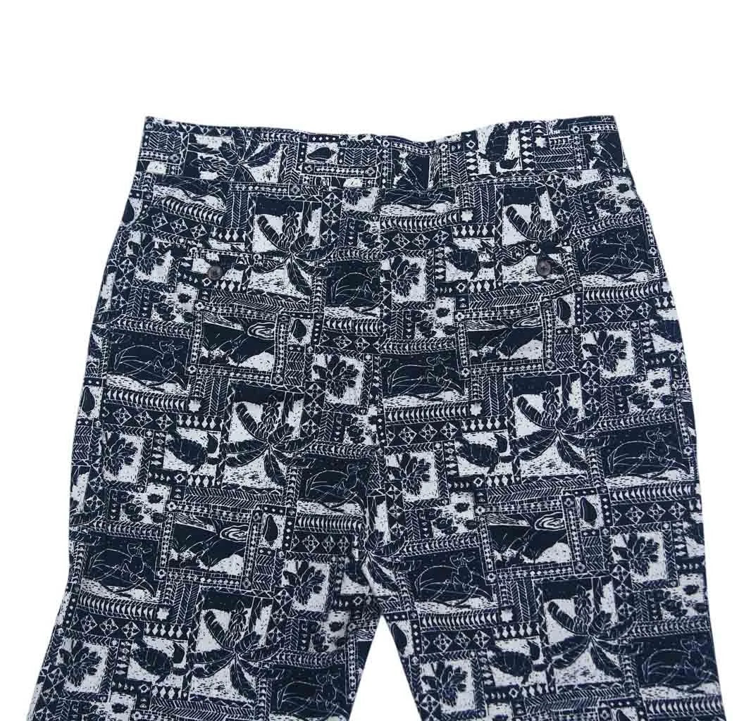 Mens Gurkha Pants 38 Black Floral Block Print Trousers Straight Fit Flat Front