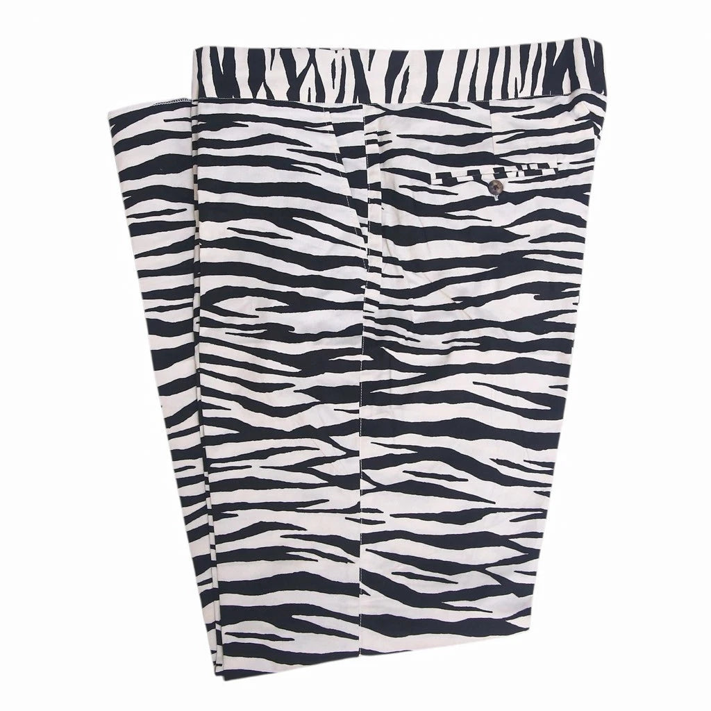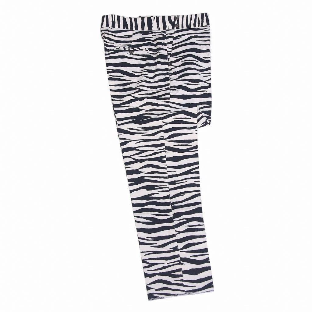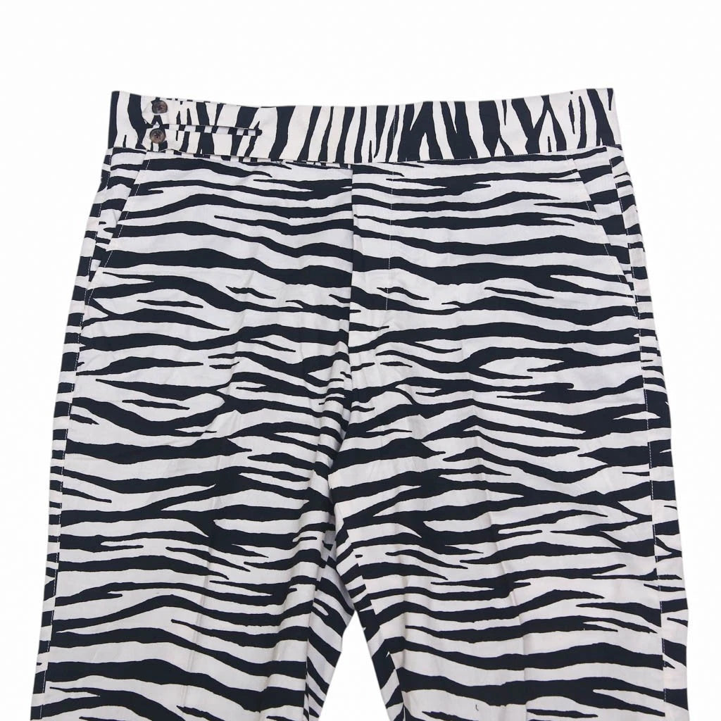 Mens Gurkha Pants 38 Black White Zebra Print Straight Fit Flat Front Trousers