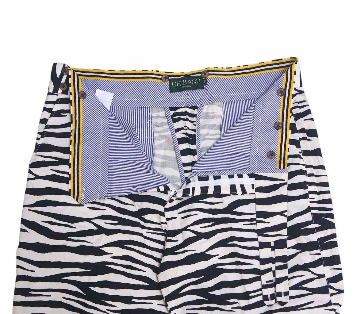 Black & Ivory Zebra Print Gurkha Pants – Handmade Designer Trousers for Men | 100% Cotton by Chiragh
