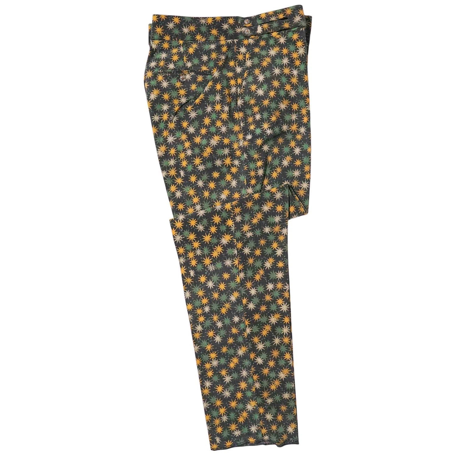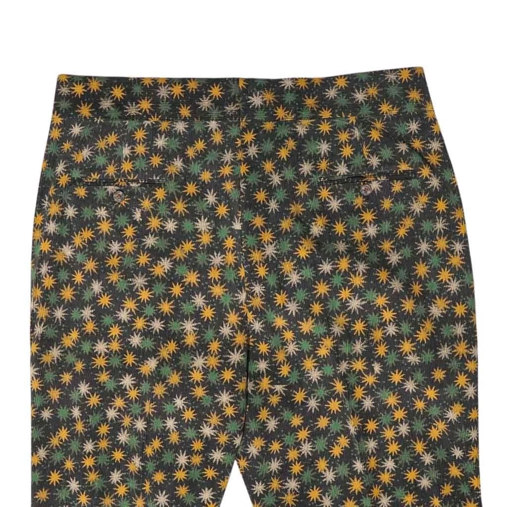 Mens Gurkha Pants 38 Brown Orange Green Floral Corduroy Trousers Straight Fit