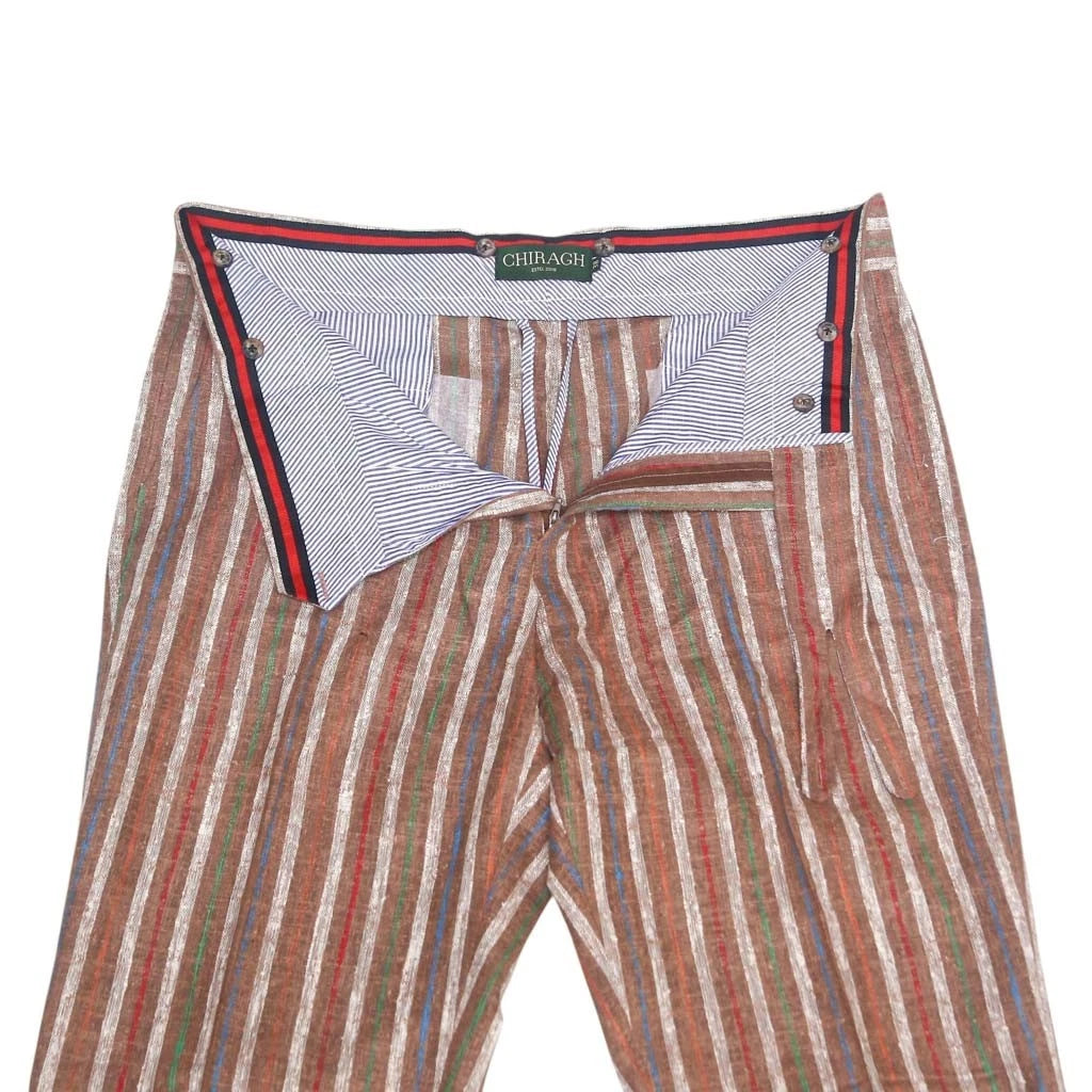 Brown Striped Gurkha Pants – Handmade Designer Trousers for Men | 100% Cotton by Chiragh