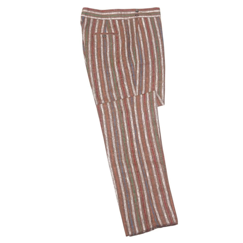 Mens Gurkha Pants 38 Brown Striped Cotton Straight Fit Flat Front Chino Trousers