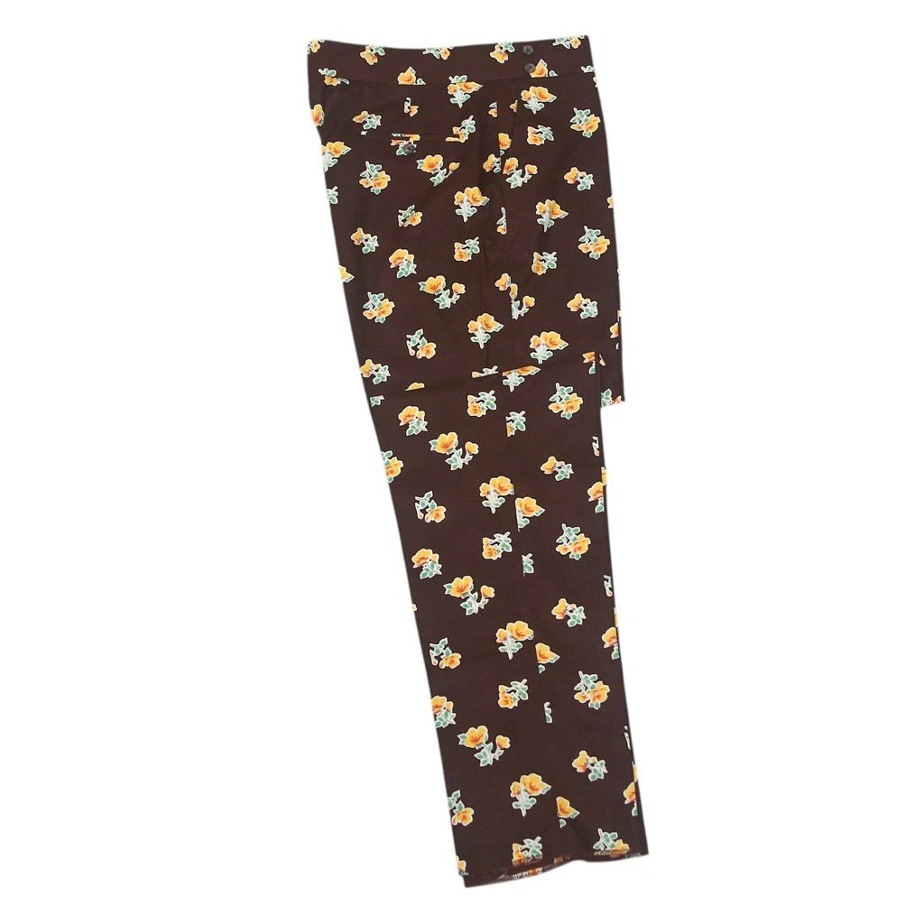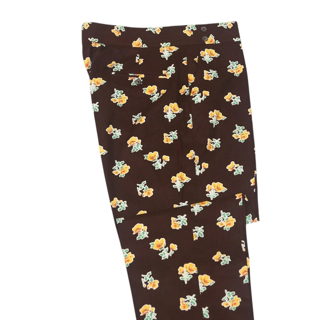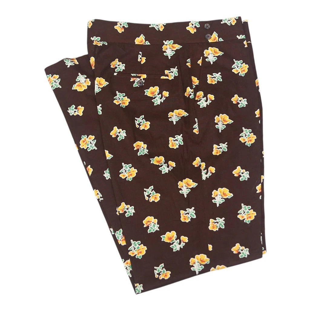 Mens Gurkha Pants 38 Brown Yellow Floral Cotton Straight Fit Flat Front Trousers