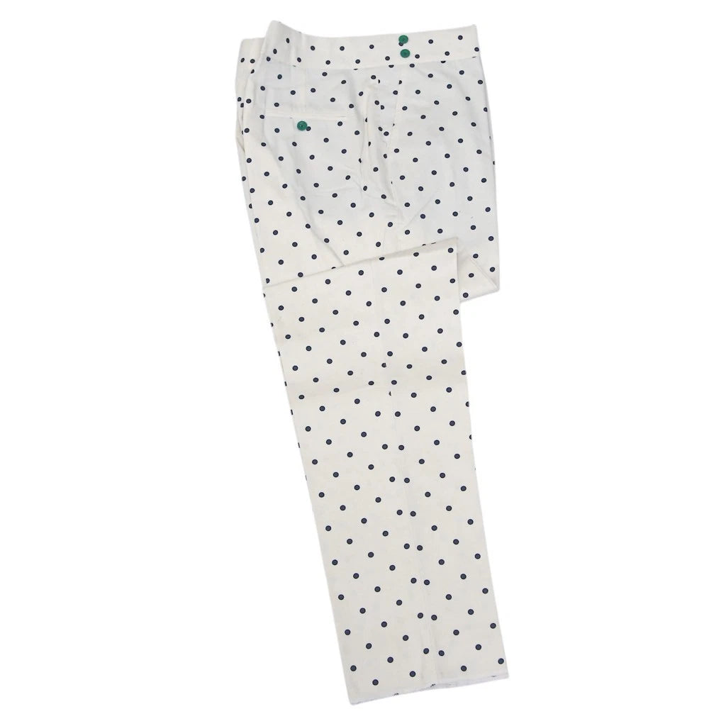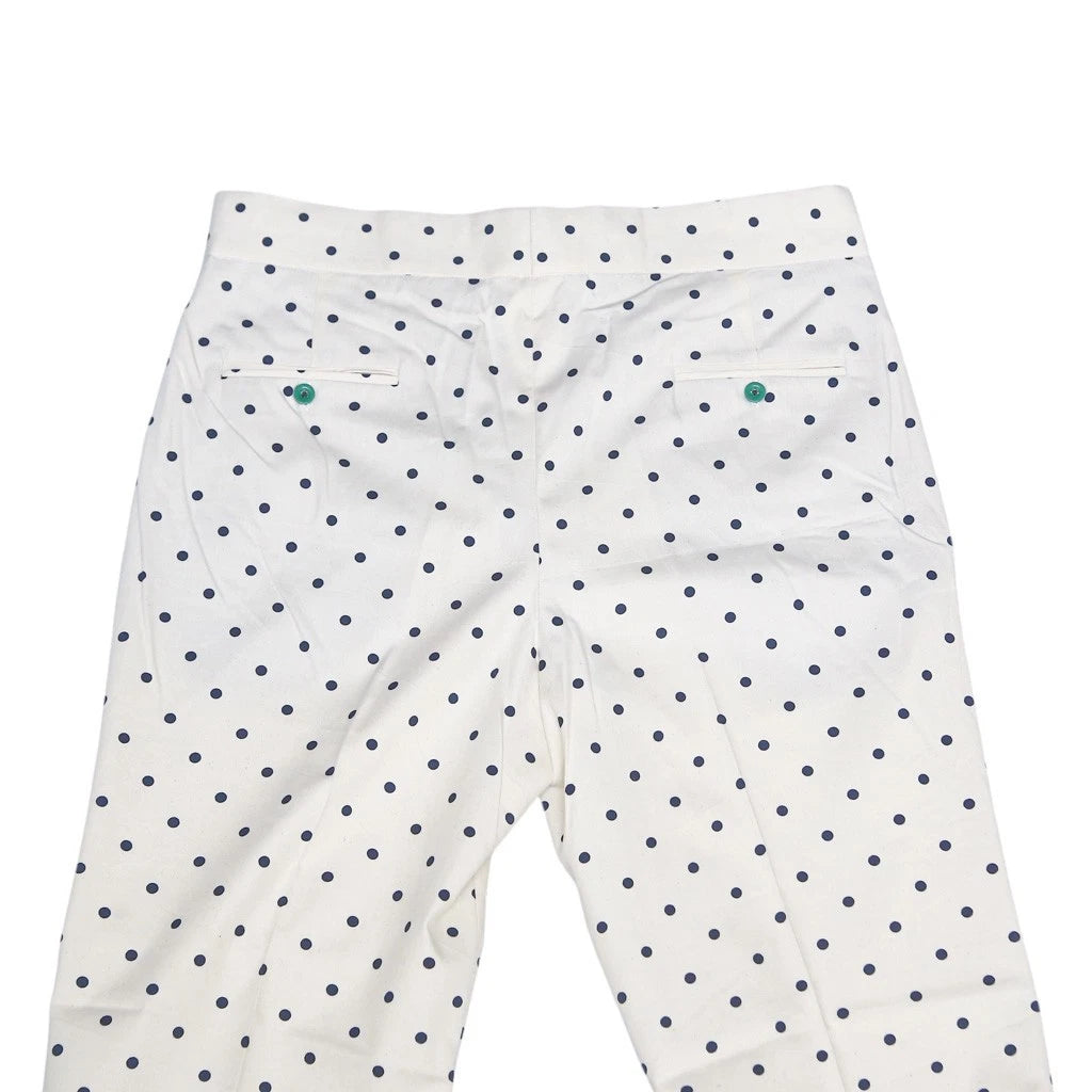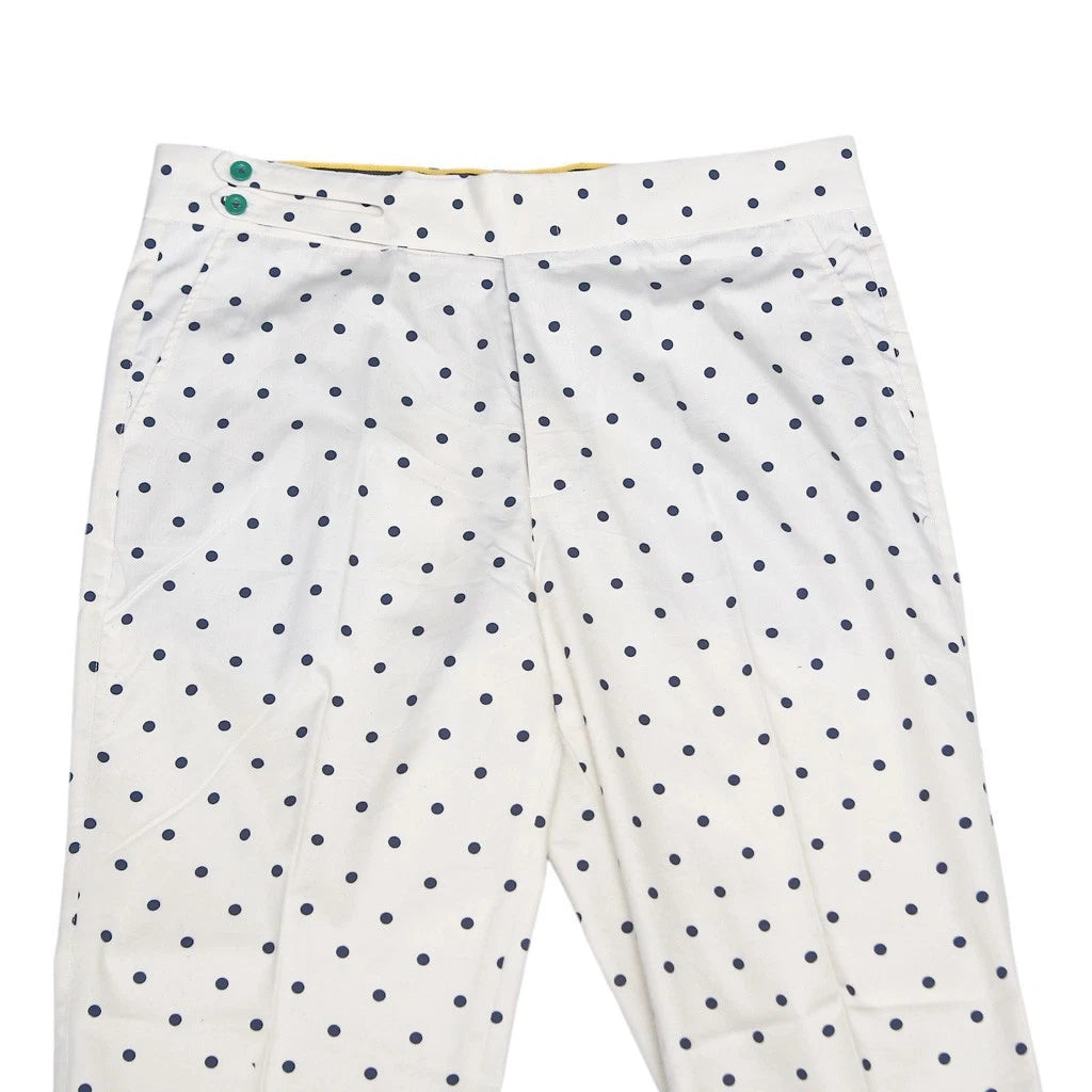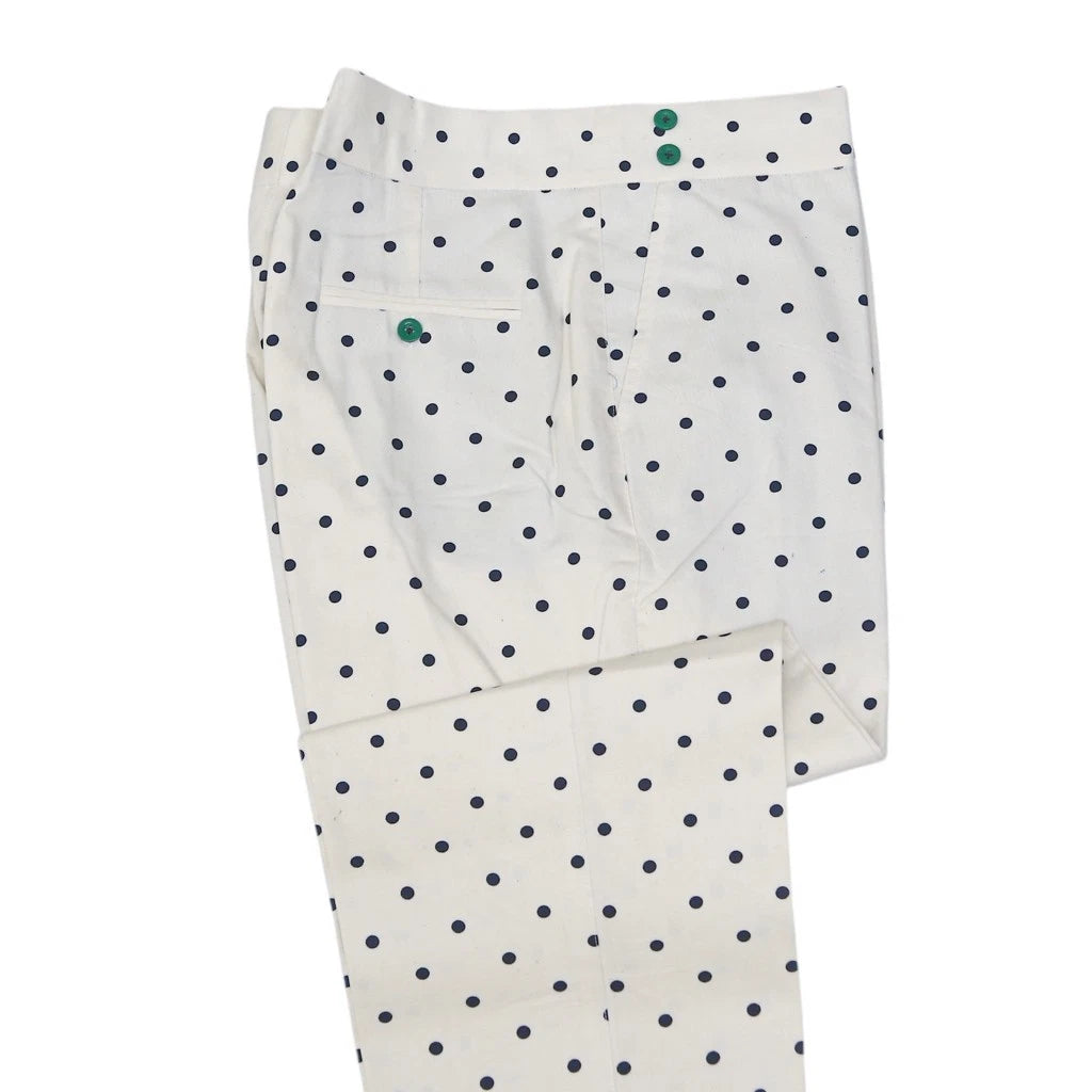 Mens Gurkha Pants 38 Ivory Blue Polka Dot Cotton Straight Flat Front Trousers