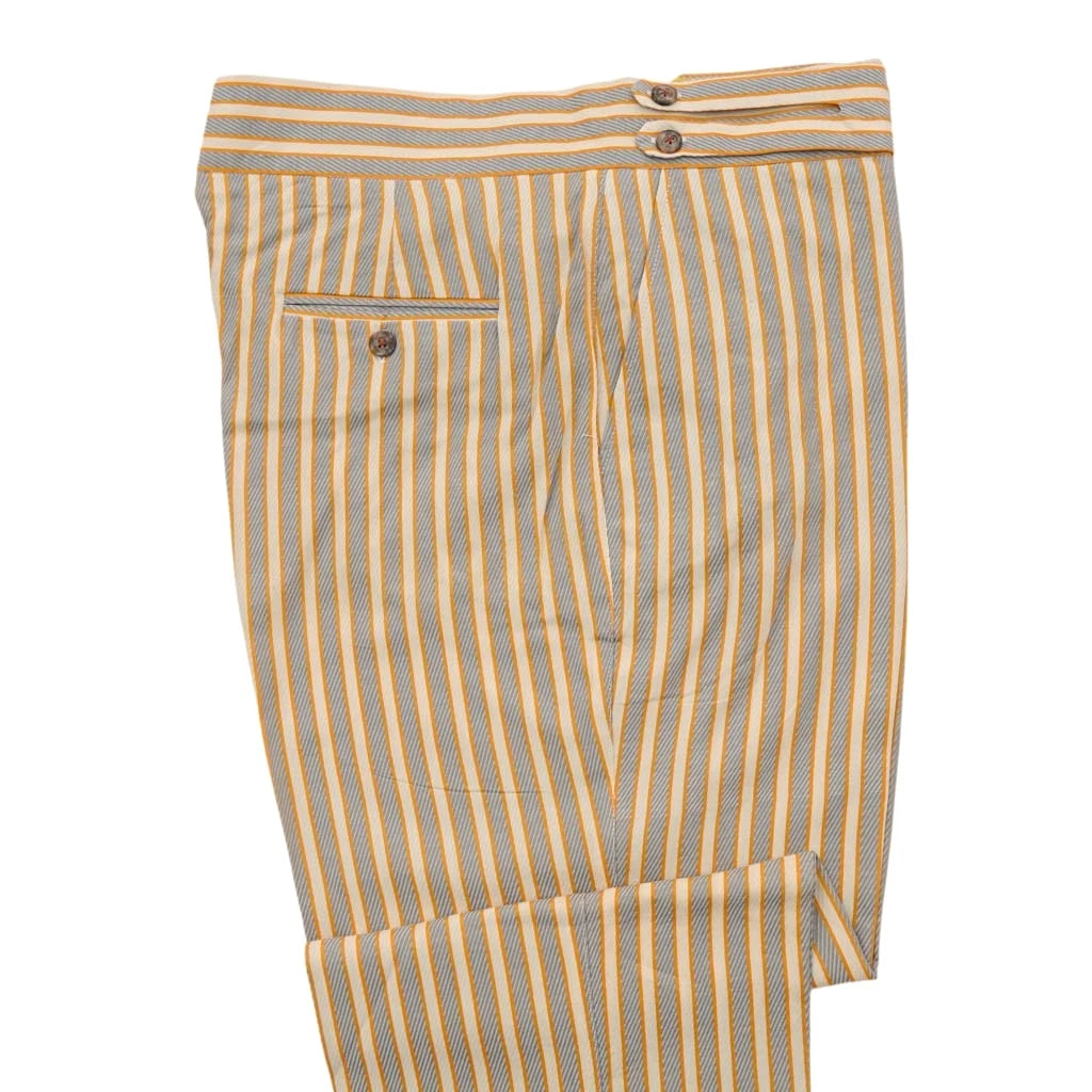 Orange, Beige, & Gray Striped Gurkha Pants – Handmade Designer Trousers for Men | 100% Cotton by Chiragh