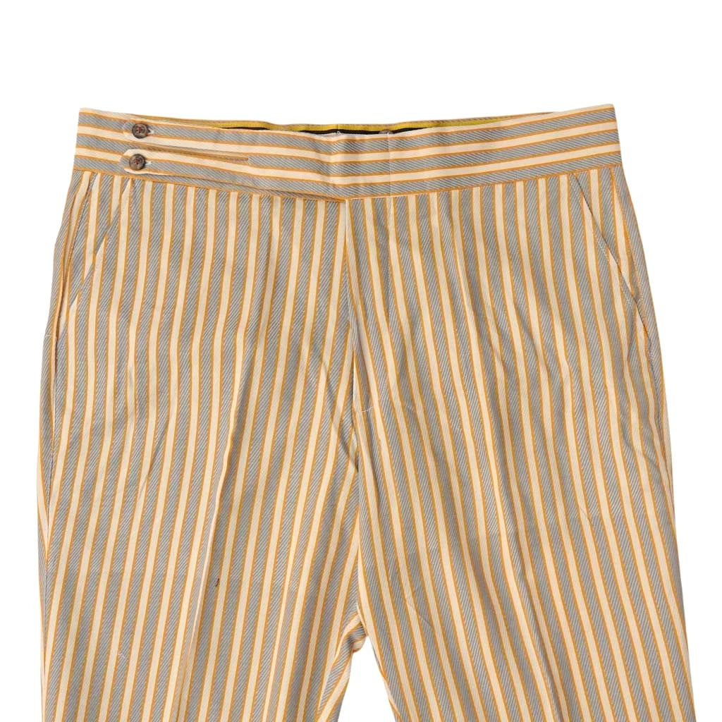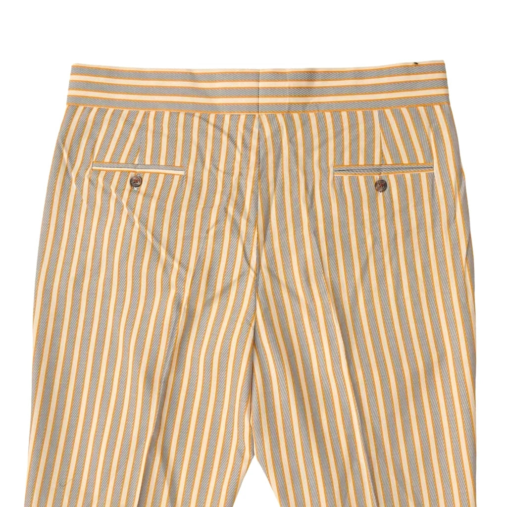 Mens Gurkha Pants 38 Orange Beige Gray Striped Trousers Straight Fit Flat Front