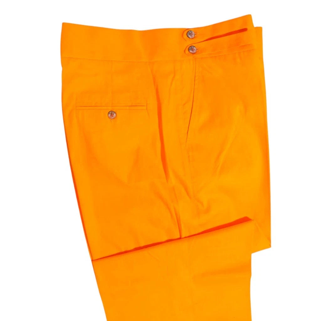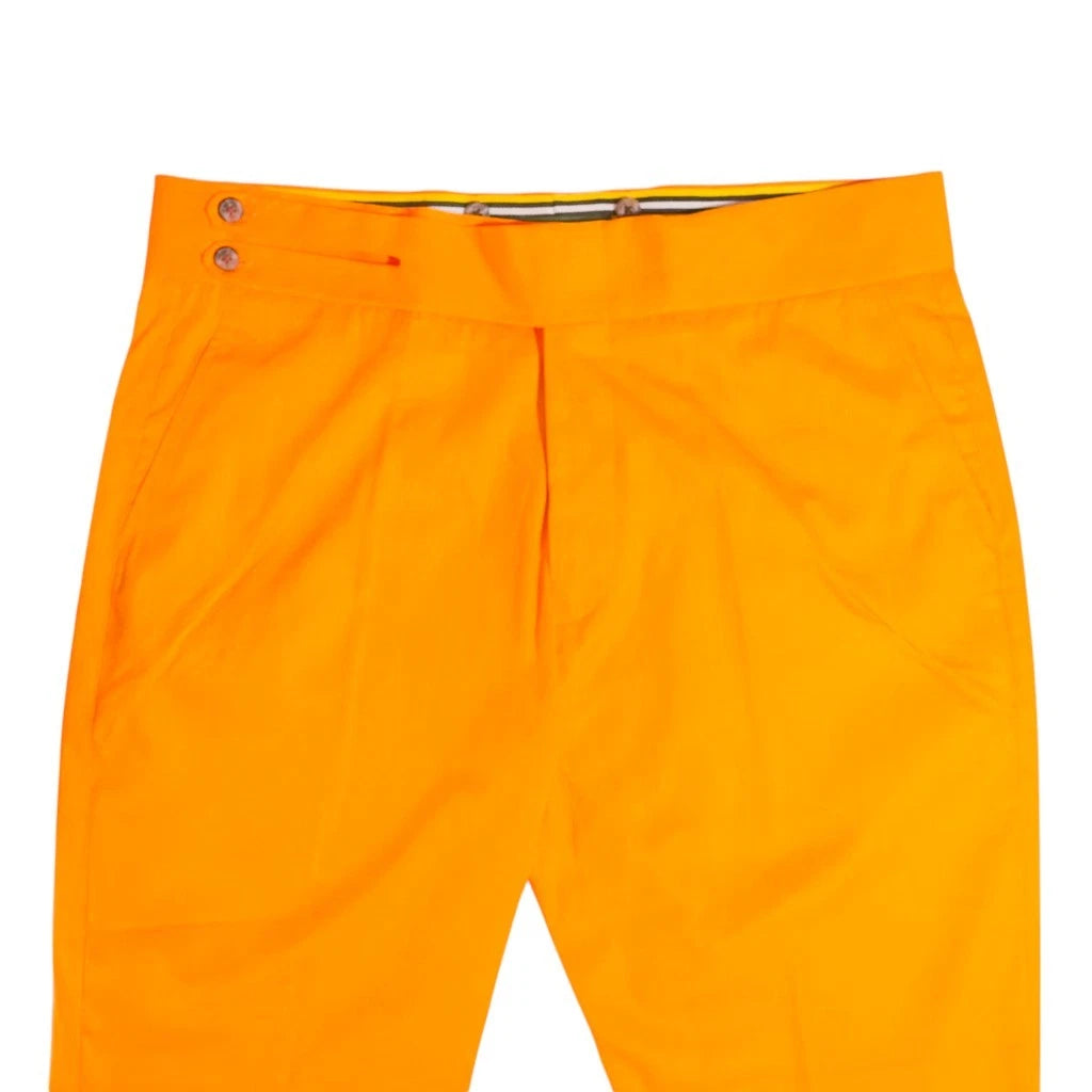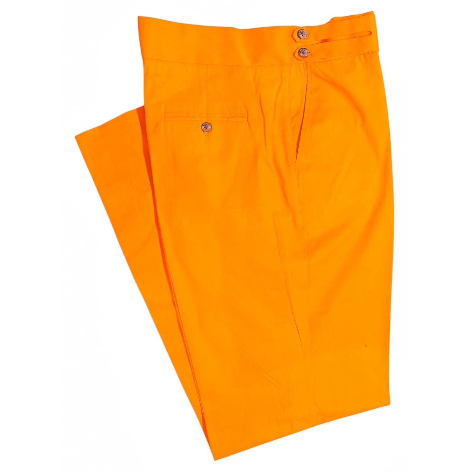 Mens Gurkha Pants 38 Orange Cotton Chino Trousers Straight Fit Flat Front Casual