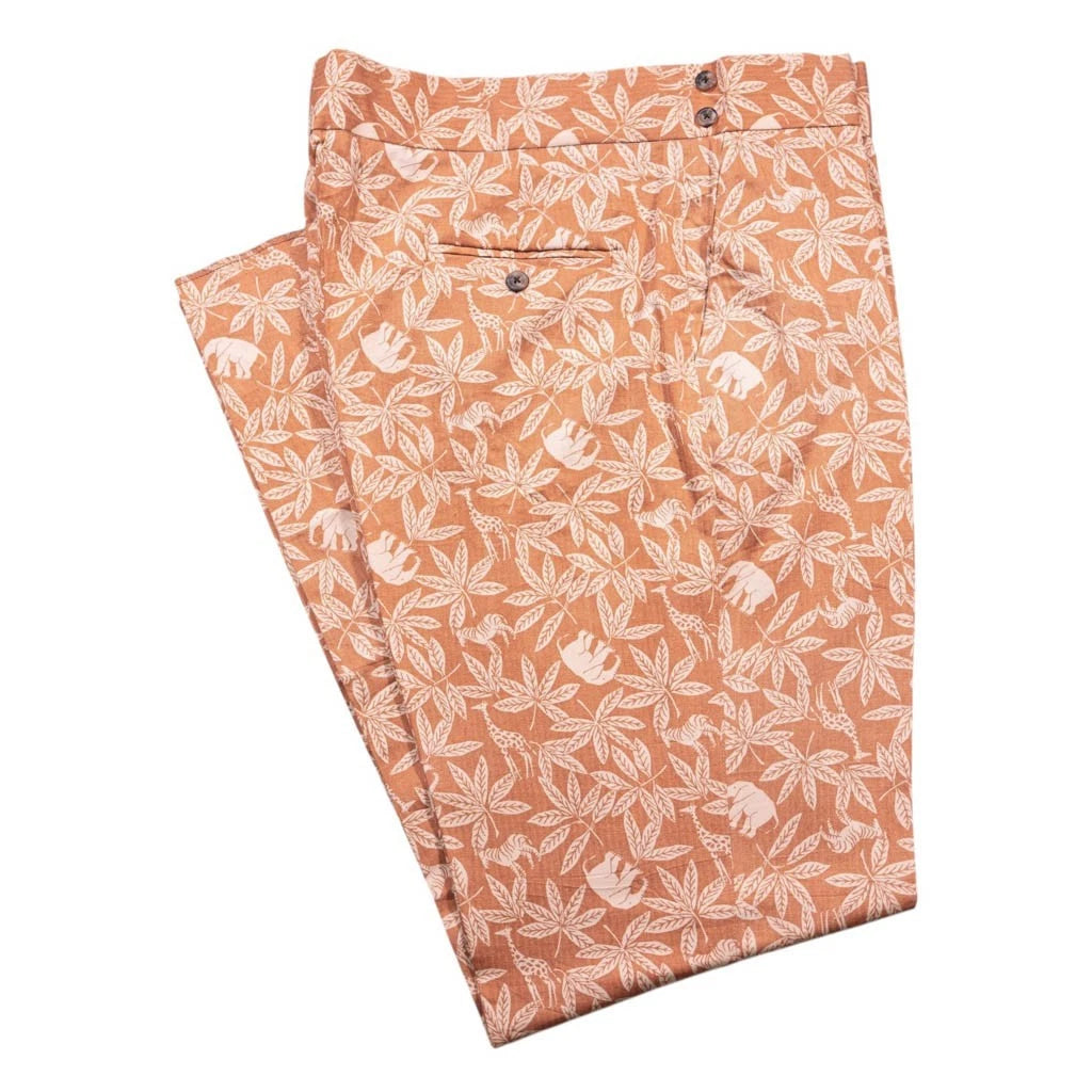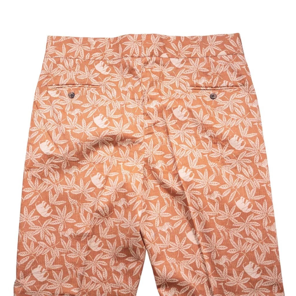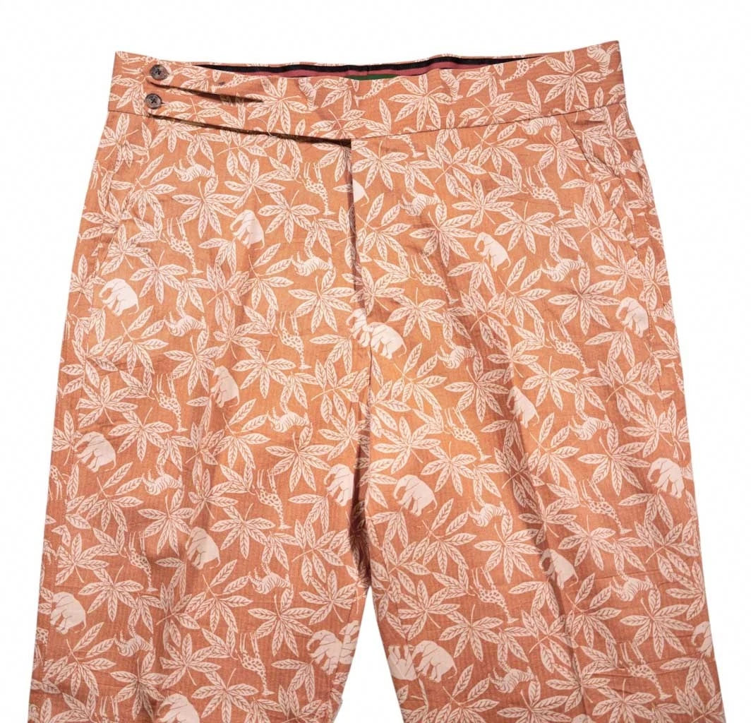 Mens Gurkha Pants 38 Orange Cream Floral Chino Trousers Straight Fit Flat Front