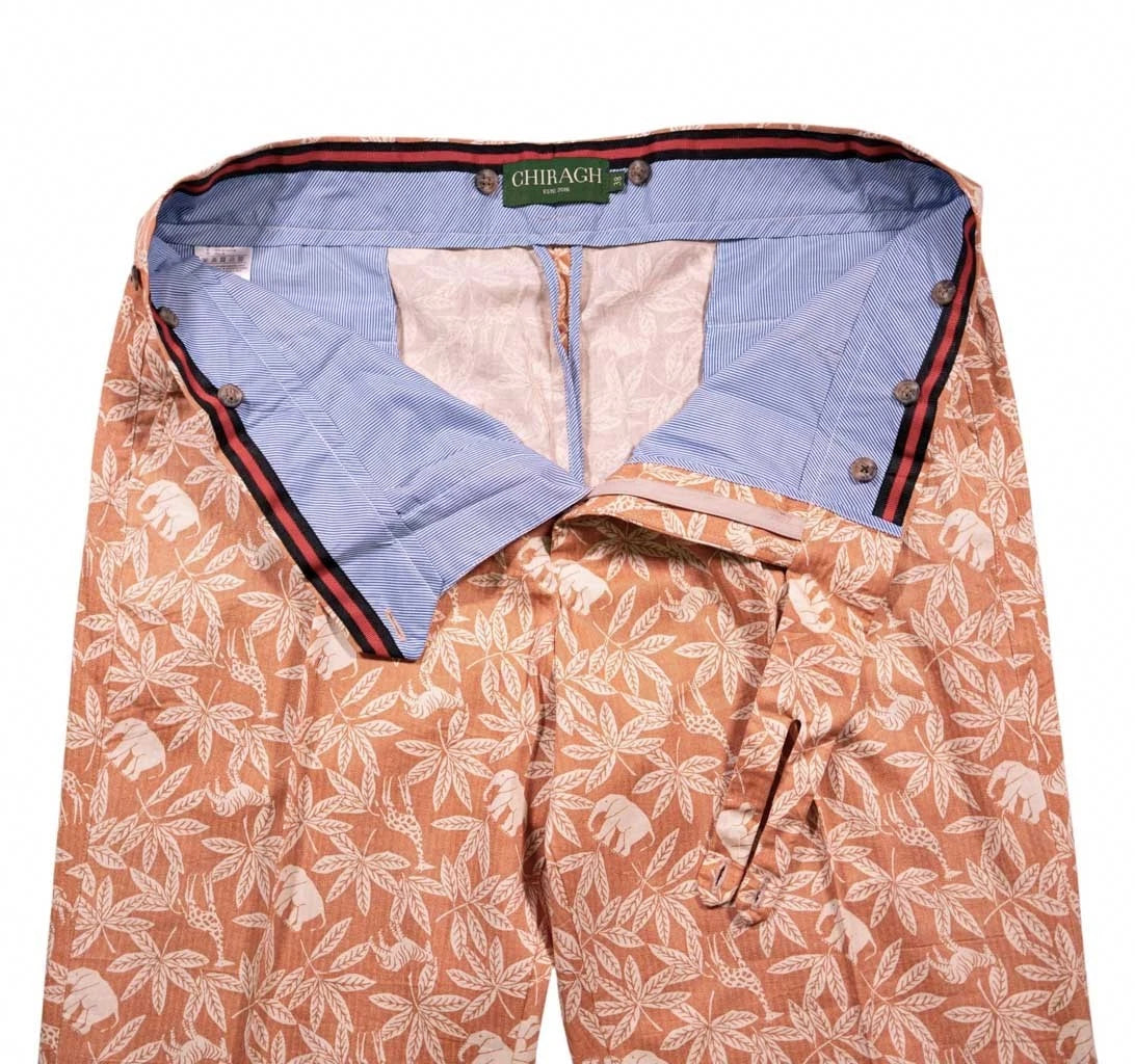 Terracotta Orange & Cream Floral Print Gurkha Pants – Handmade Designer Trousers for Men | 100% Cotton by Chiragh