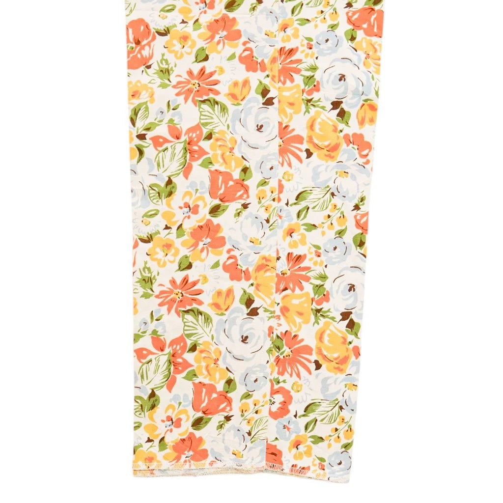 Color: White Base with an Orange, Green, Blue, & Brown Floral Print
