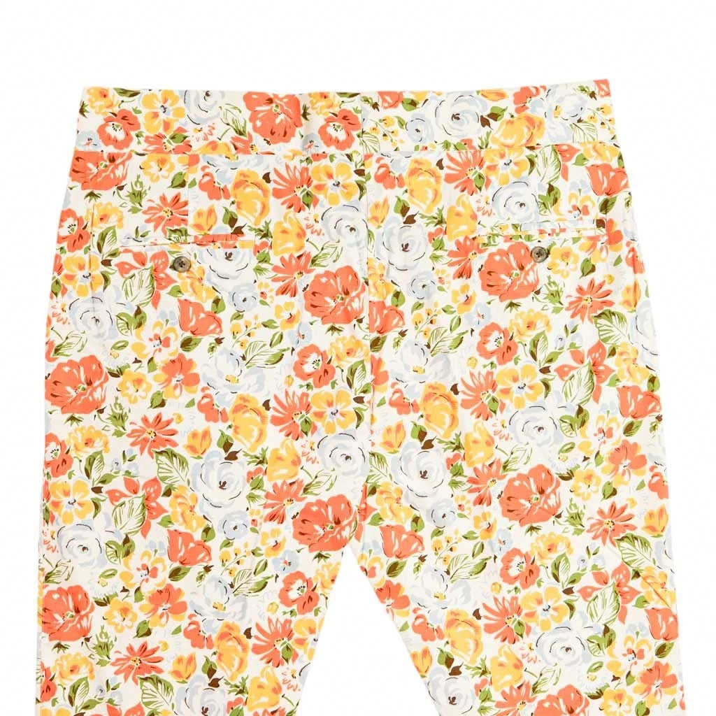 Mens Gurkha Pants 38 Orange Green Blue Floral Trousers Straight Fit Flat Front