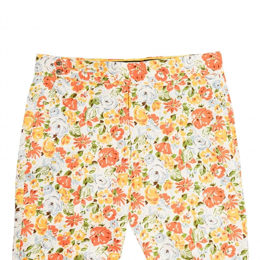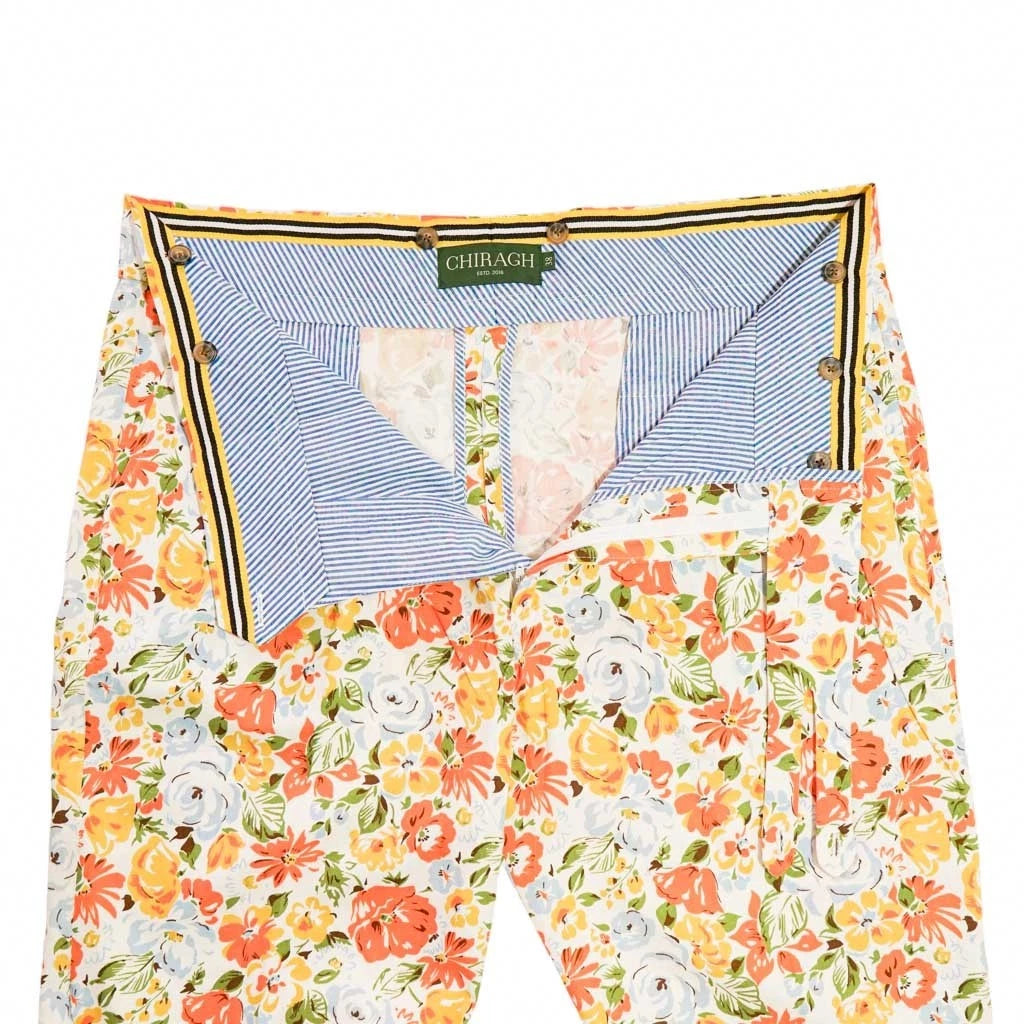 Orange, Green, & Blue Floral Gurkha Pants – Handmade Designer Trousers for Men | 100% Cotton by Chiragh