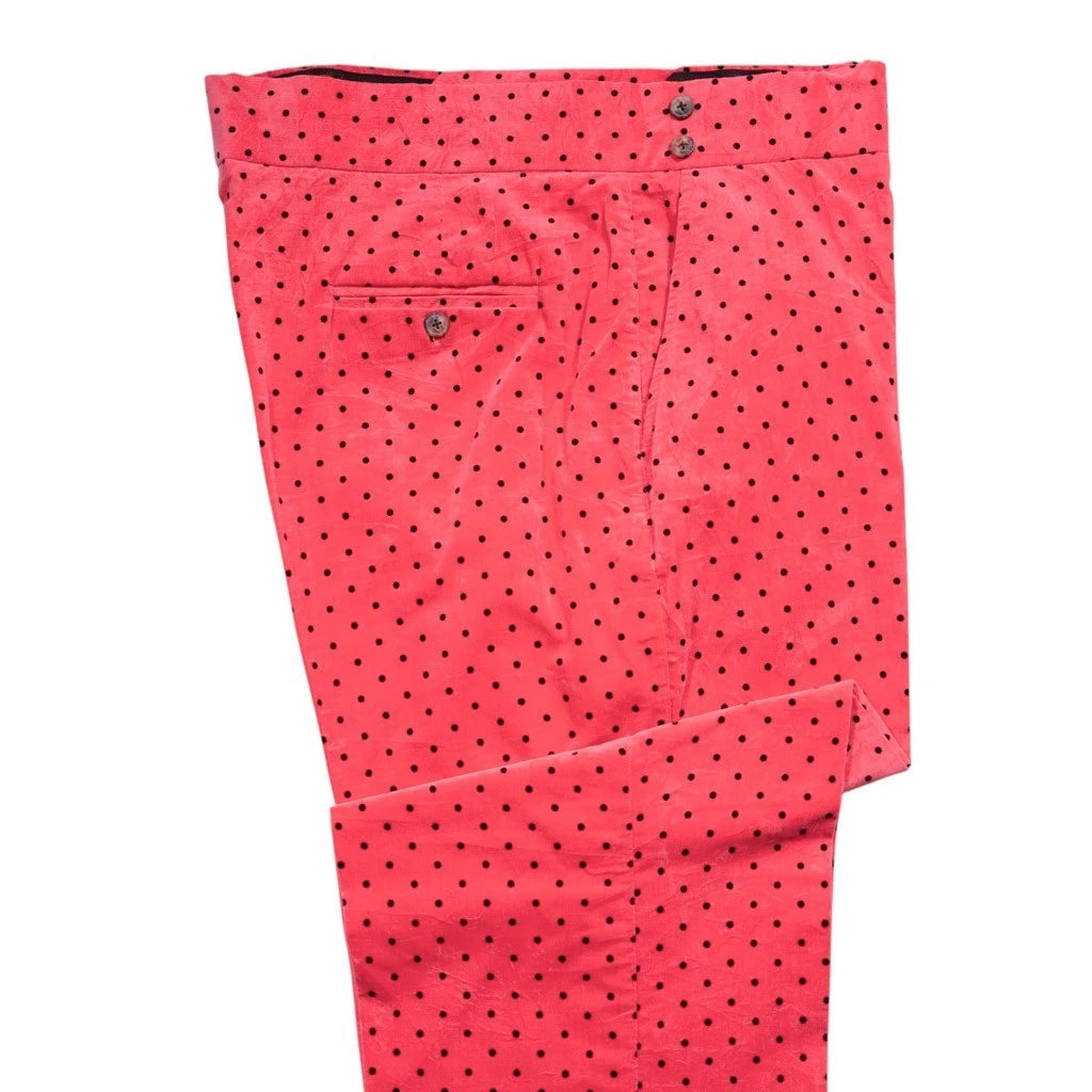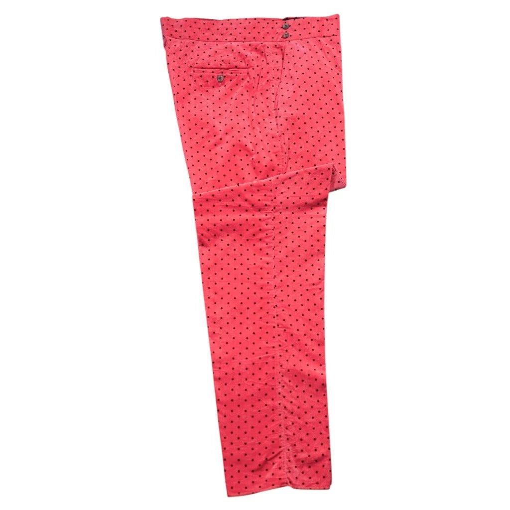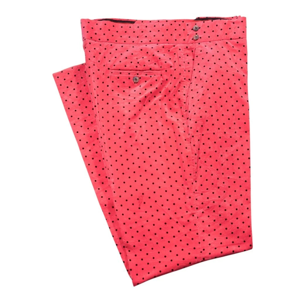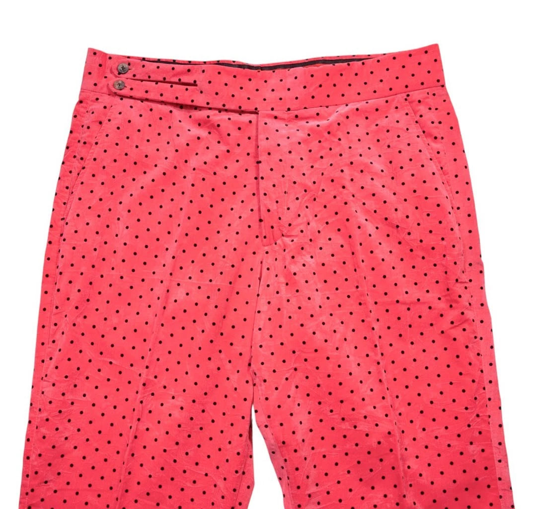Mens Gurkha Pants 38 Pink Polka Dot Velvet Dress Trousers Flat Front Straight