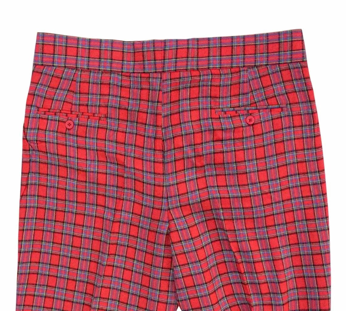 Mens Gurkha Pants 38 Red Blue Yellow Plaid Trousers Straight Fit Flat Front
