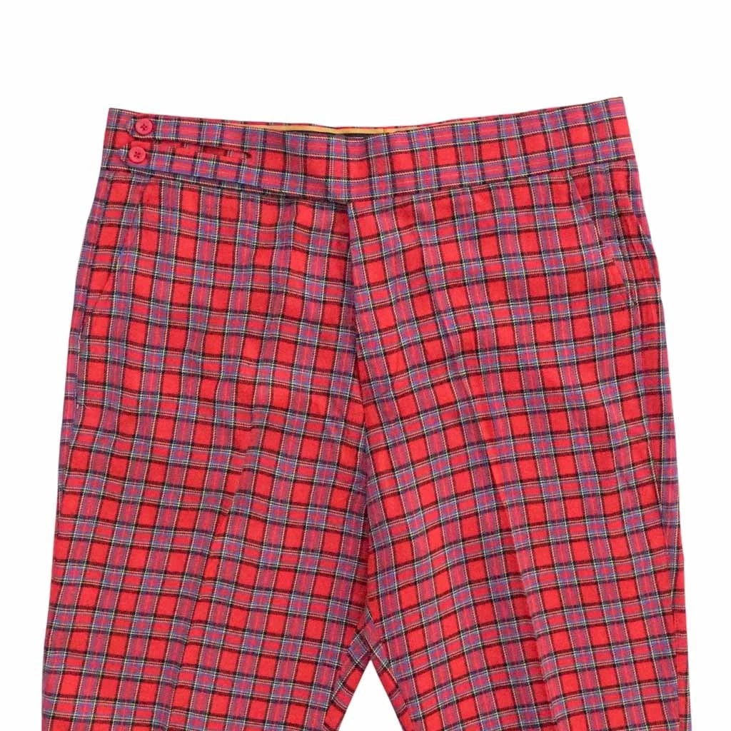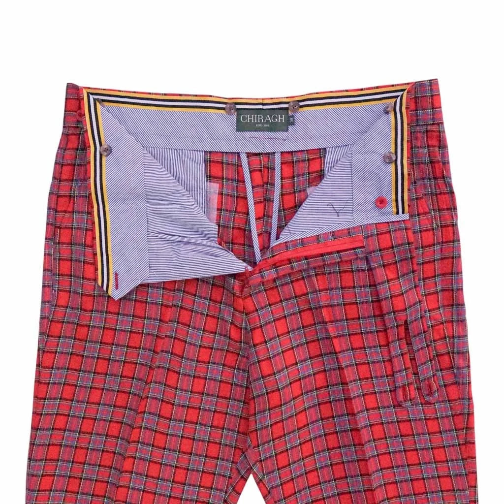 Red, Blue, & Yellow Tartan Plaid Gurkha Pants – Handmade Designer Trousers for Men | 100% Cotton by Chiragh