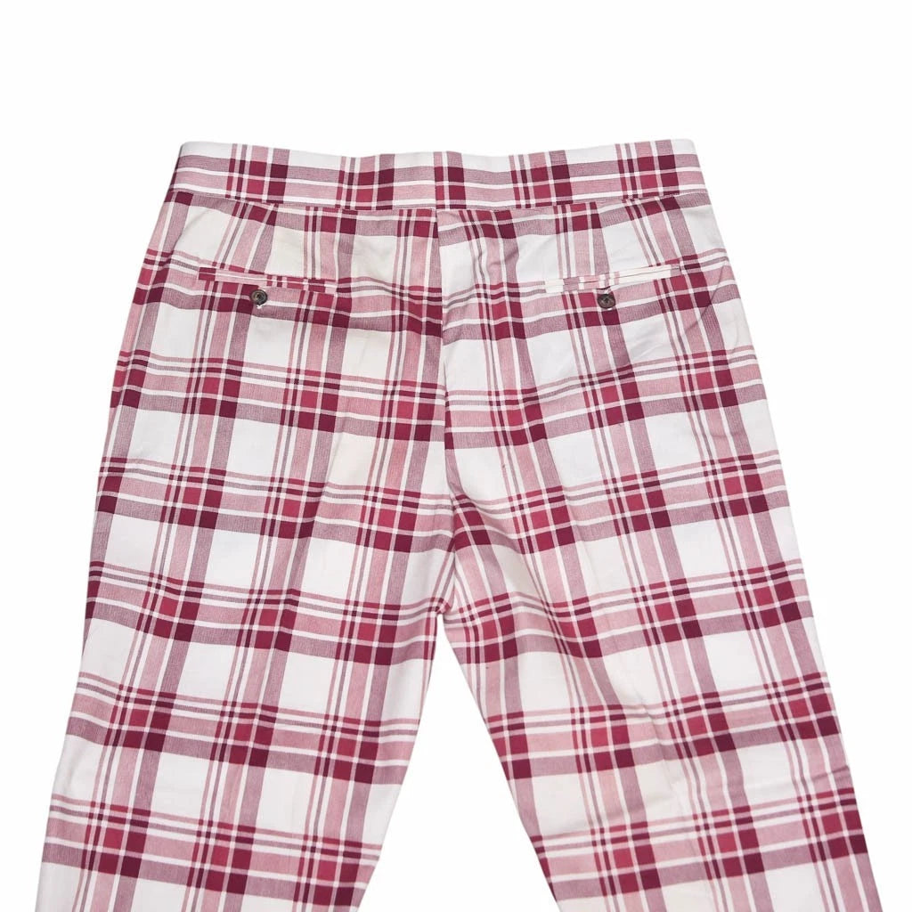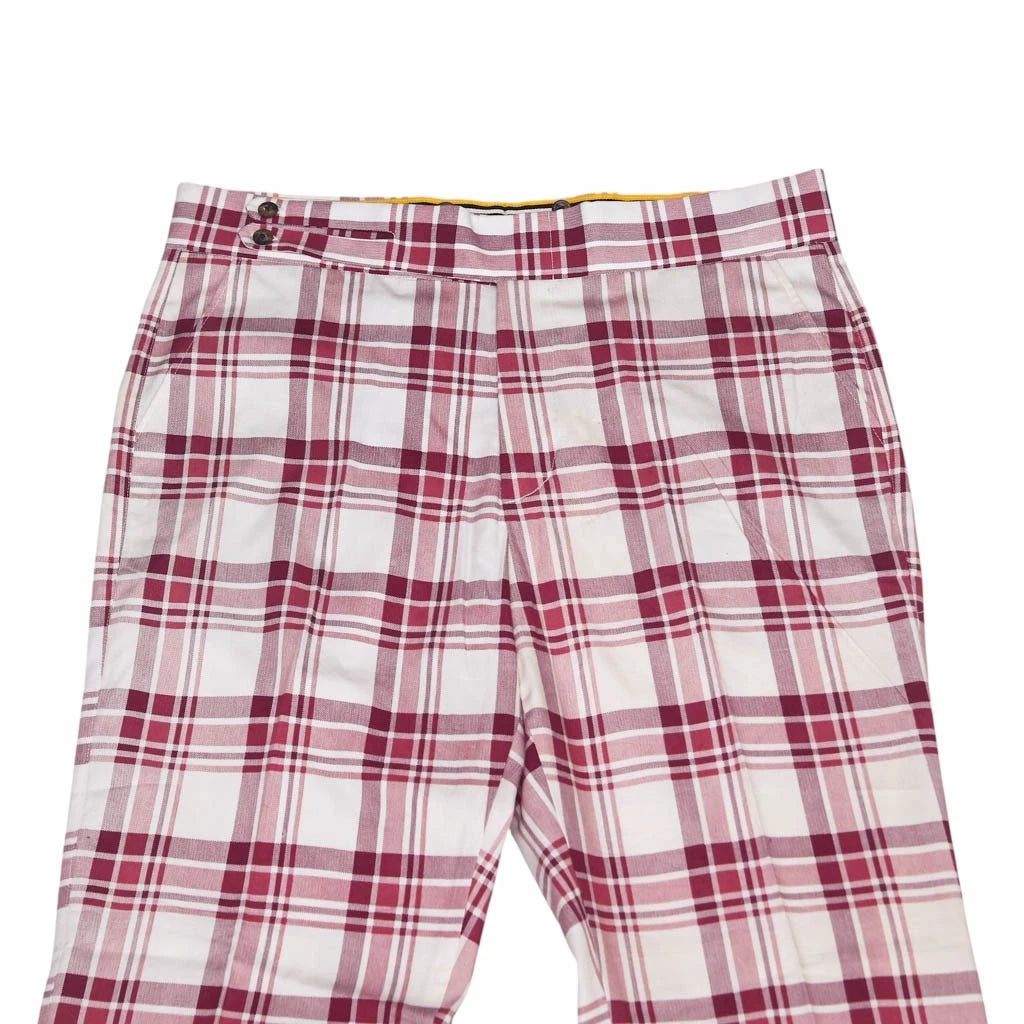 Mens Gurkha Pants 38 Red White Plaid Cotton Straight Fit Flat Front Trousers