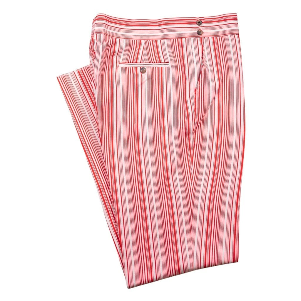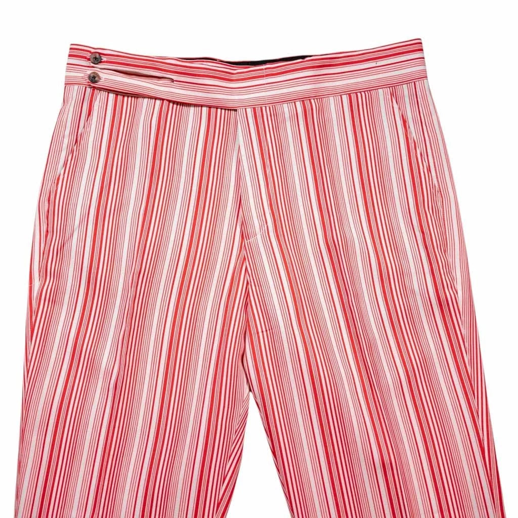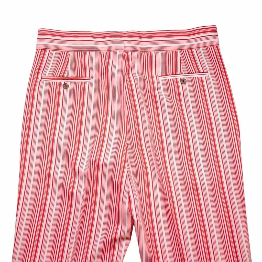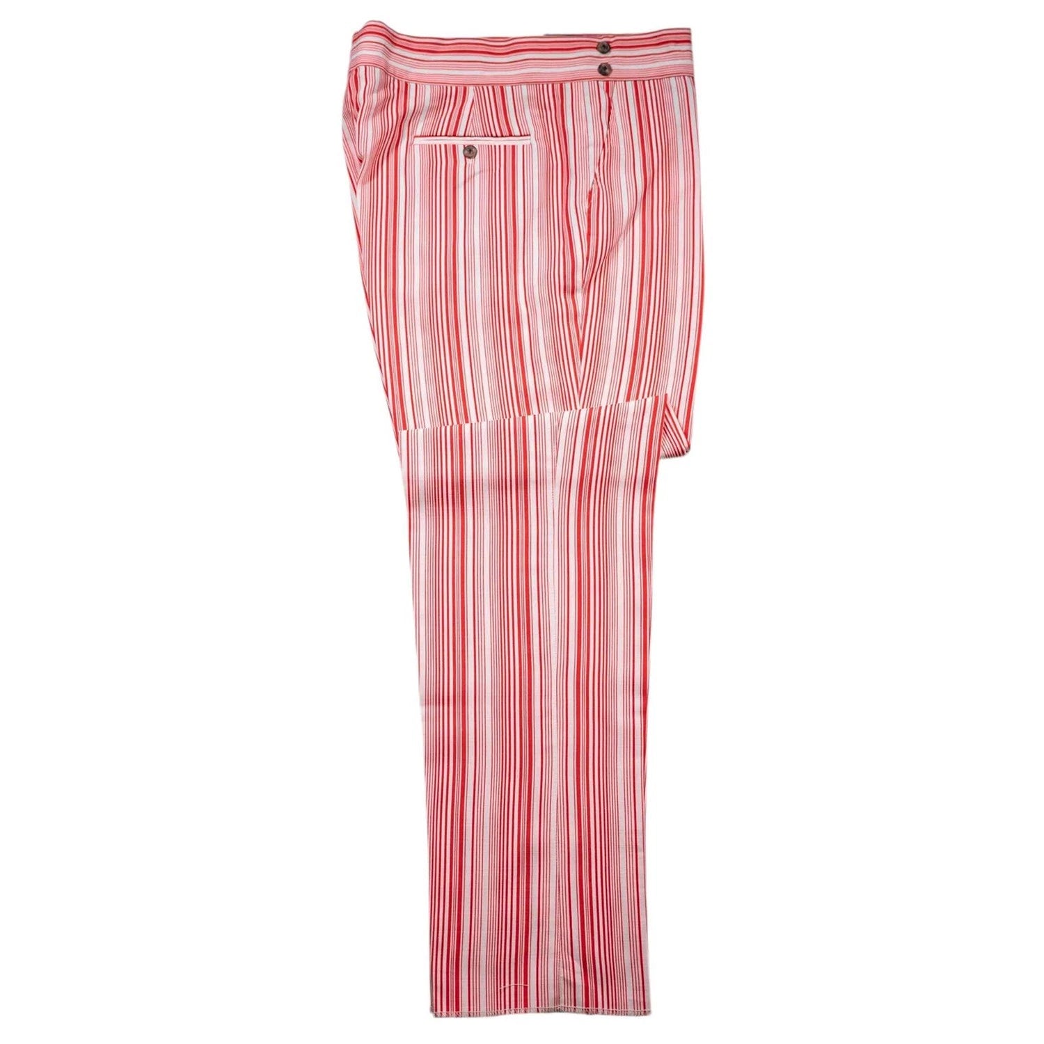 Mens Gurkha Pants 38 Red White Striped Cotton Trousers Straight Fit Flat Front