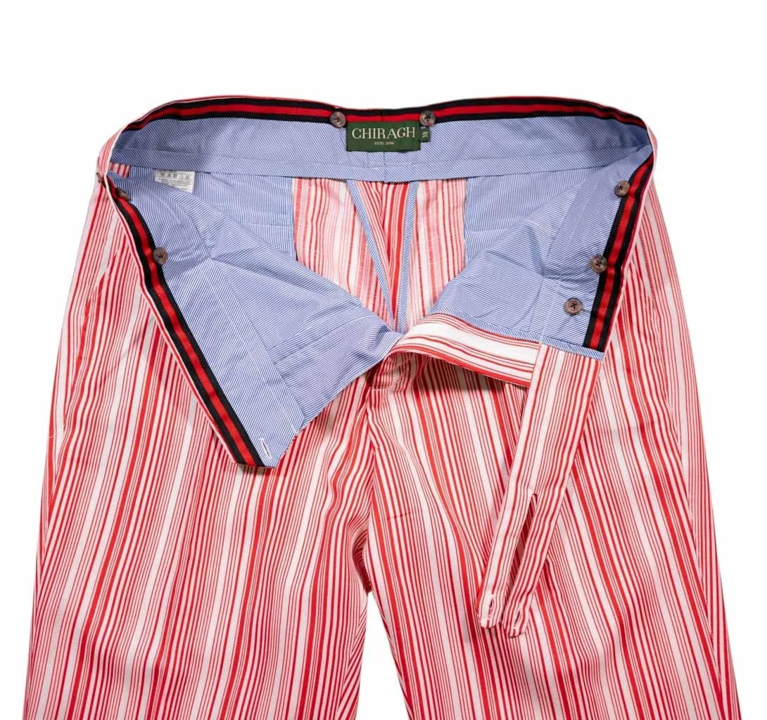 Red & White Striped Gurkha Pants – Handmade Designer Trousers for Men | 100% Cotton by Chiragh