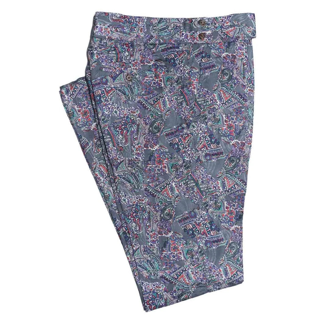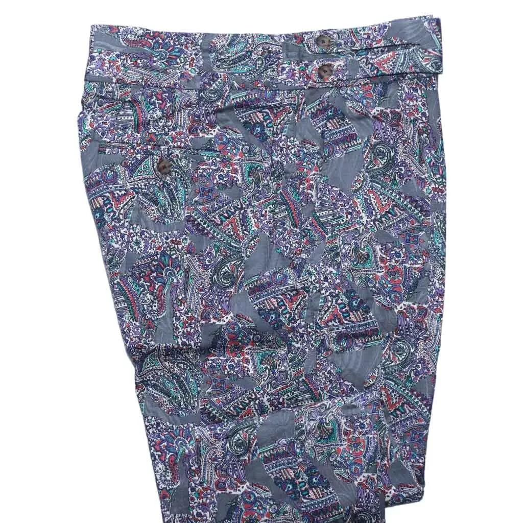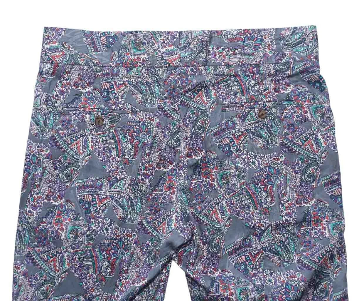 Mens Gurkha Pants Gray Purple Red Paisley Abstract Slim Straight Flat Front 36