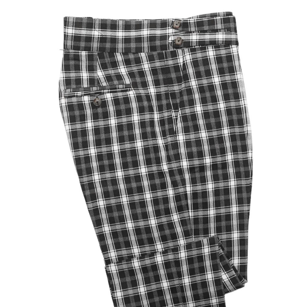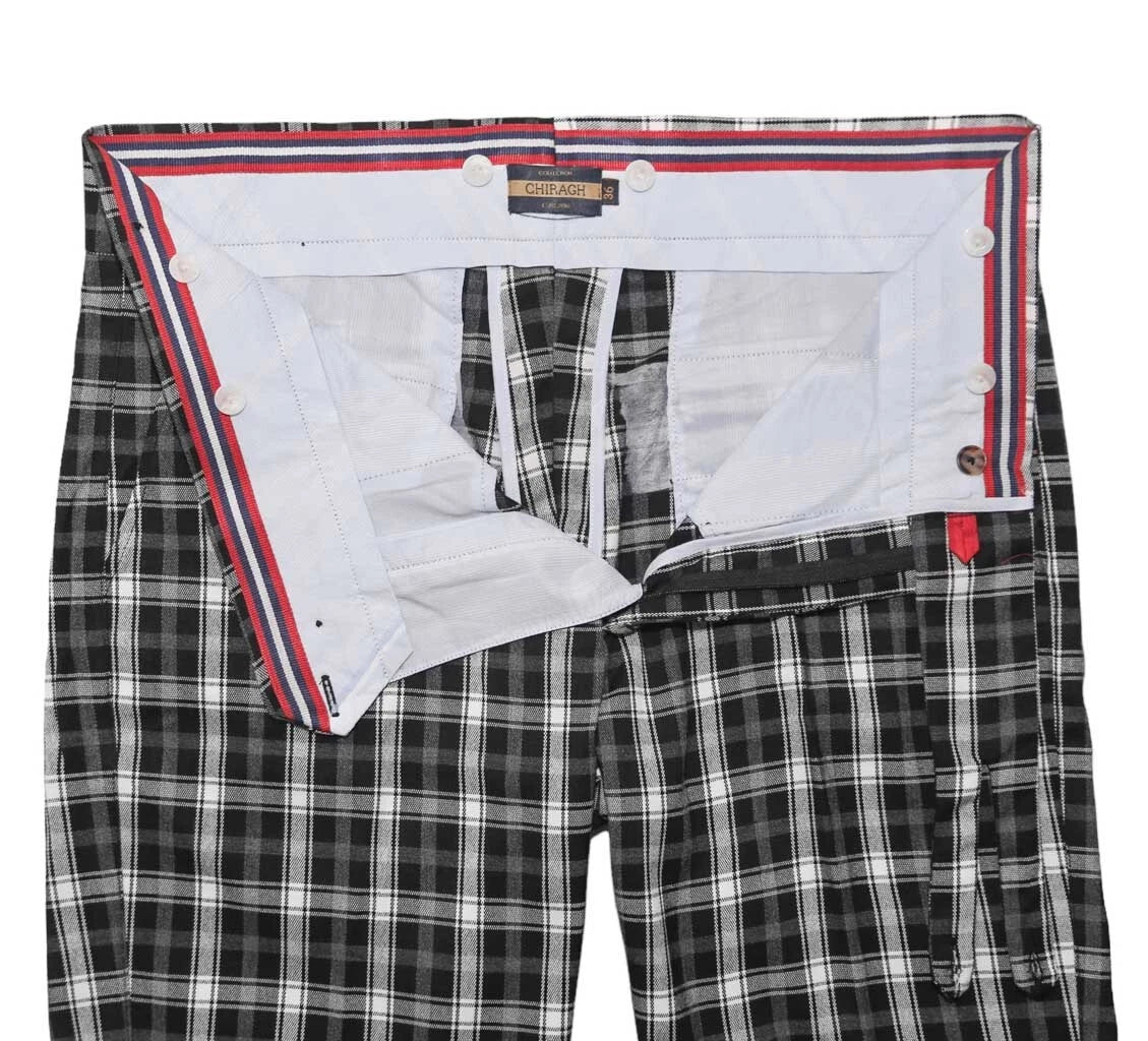 Classic, versatile, and refined — these black, gray, and white plaid Gurkha trousers by Chiragh are a wardrobe essential for men who value elegant tailoring. Expertly handmade from 100% premium wool, they feature a slim straight, flat-front fit that combines modern style with timeless sophistication.
